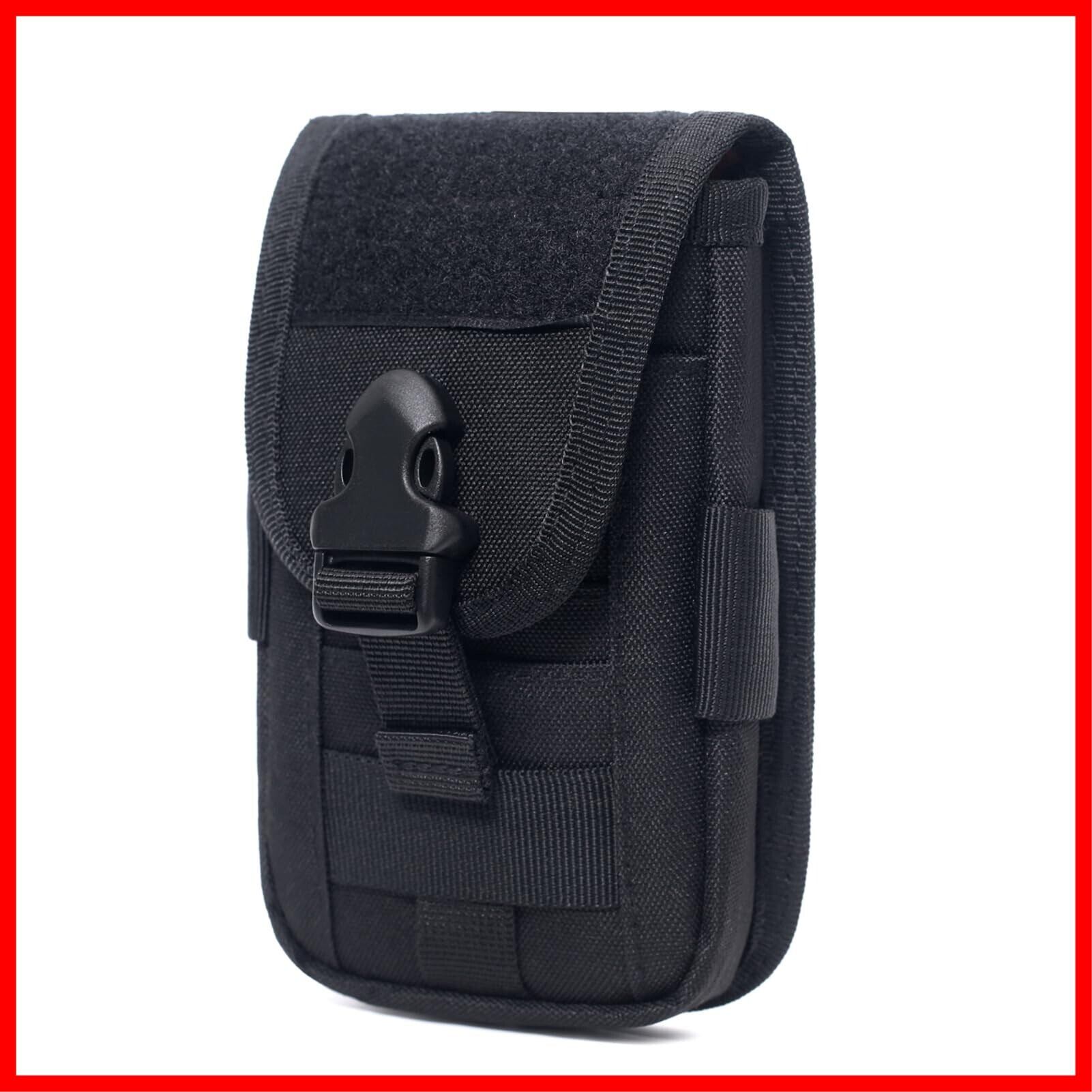 Azarxis スマホポーチ Molle対応 スマートフォン 手帳型 スマホケース モールシステム ユーティリティ EDCポーチ サバゲ― タクティカル ユーティリティポーチ (ブラック)
