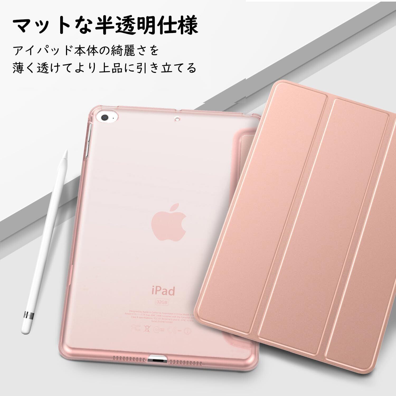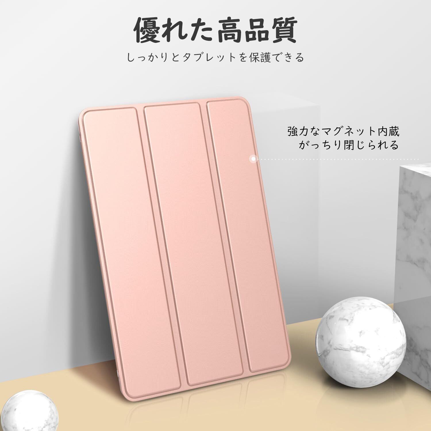 「上質な素材採用」蓋は手触りが良く高級感のあふれる耐久性に優れた高級PUレザーで、バックケースは頑丈で耐摩耗性の高いマット半透明のPC素材を採用しており、アップルロゴが透けて見えて綺麗に見映えてきます。裏地材質は液晶表面に優しいマイクロファイバーの仕上がりで、タブレットに最高の保護力を提供してくれます。