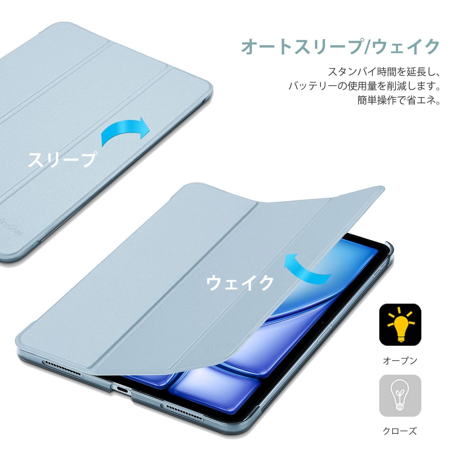 ProCase iPad Air 11インチ ケース M3 (2025) / M2 (2024) / iPad Air 第5世代 / 第4世代 軽量 スタンド 三つ折り フォリオ保護ケース 半透明バックカバー Apple Pencil 2対応 対応端末:iPad air 11インチ M3 (2025)、M2 (2024)、iPad Air5 2022、Air4 2020 - スカイブルー