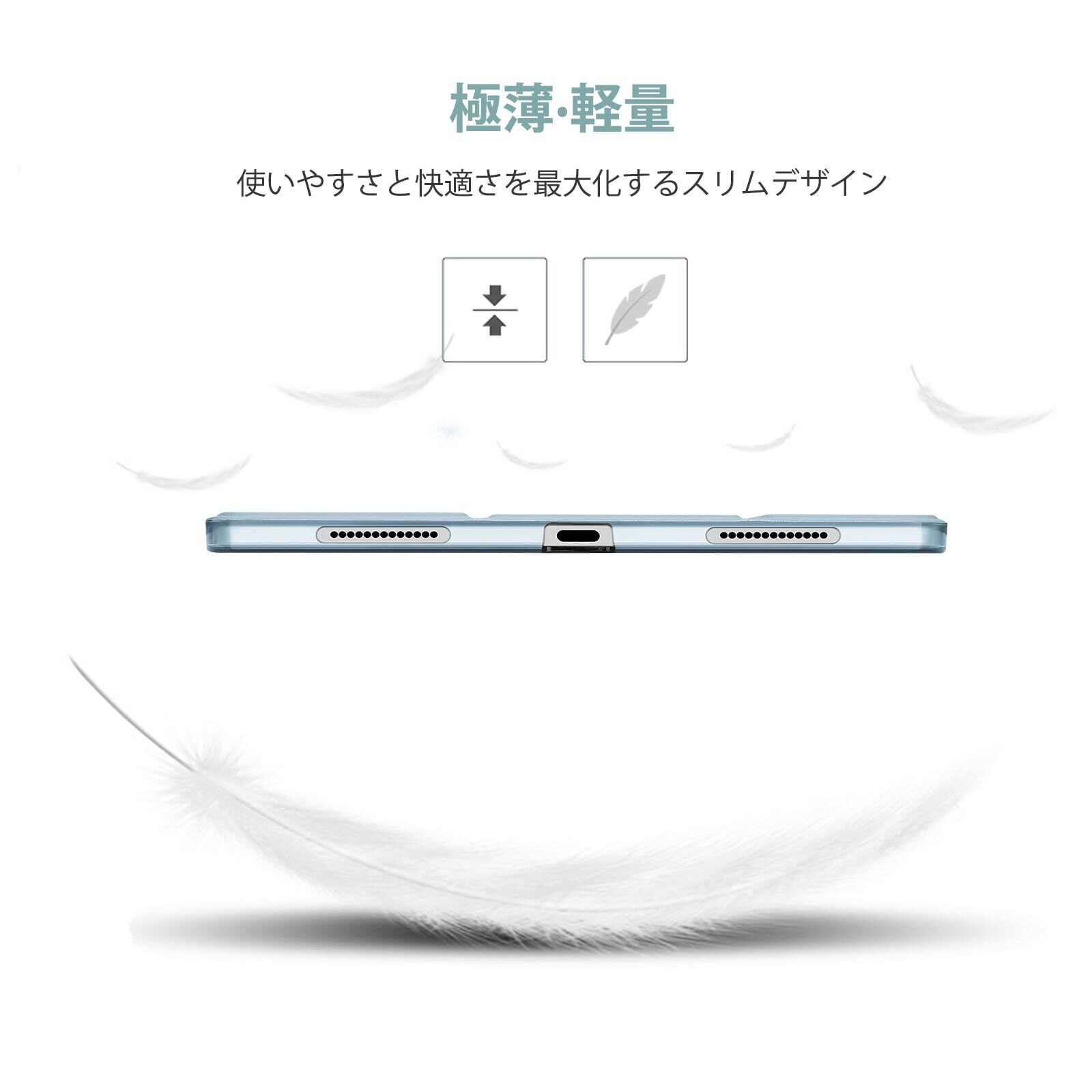 半透明のつや消し背面カバーは、耐衝撃で指紋や傷から保護しながら、iPad本来の美しさをそのまま活かせます。