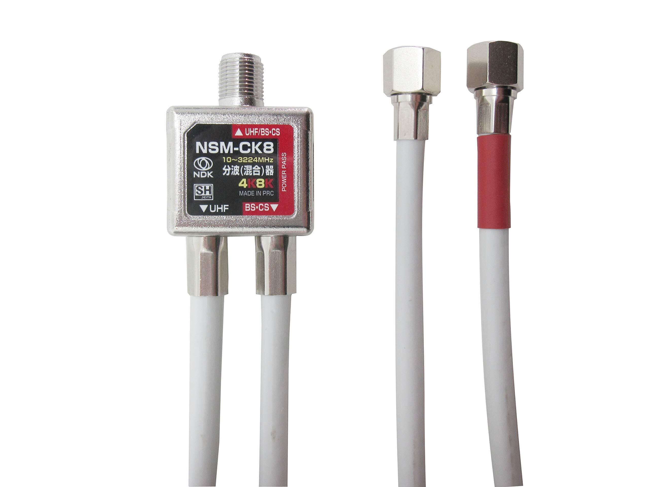 二幸電気工業 アンテナ混合分波器 ケーブル付き (4K 8K BS CS CATV 地デジ) 屋内用 アンテナケーブル SHマーク付 (NSM-CK8(SH))ケーブル長40cm