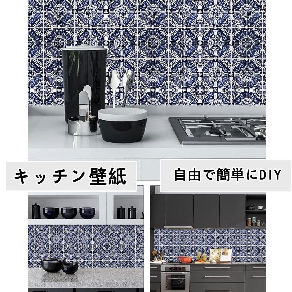 Dekori 壁紙シール タイルシール 20枚セット タイルステッカー PVC製 断熱 防水 防汚 厚い リメイクシート おしゃれ ウォールステッカー 工具不要 簡単取付 モロッコ風 剥がせる壁紙 床シール キッチン 洗面所 トイレ 雰囲気変貌 古い家具の改装 DIY壁紙デコレーション 10cm*10cm 20枚セット