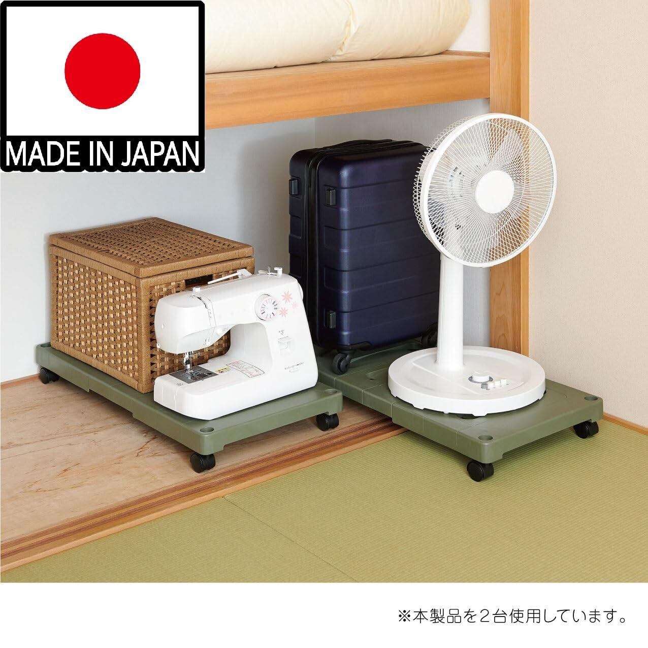 Belca 日本製 収納棚 押入れ収納キャリー 2台入り 幅37×奥行78×高さ10cm エコグリーン キャスター付き すのこ OUC-RG2T