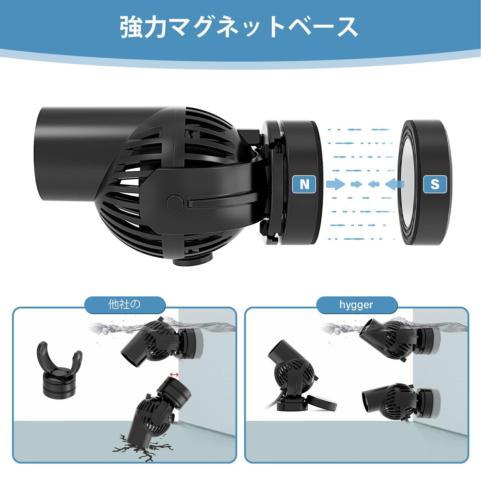 hygger 水流ポンプ 小型 5000L/H 6w ウェーブポンプ 水槽ポンプ 循環ポンプ 静音 360°回転可能 マグネット式 流量調整397L水槽以下 淡水/海水用