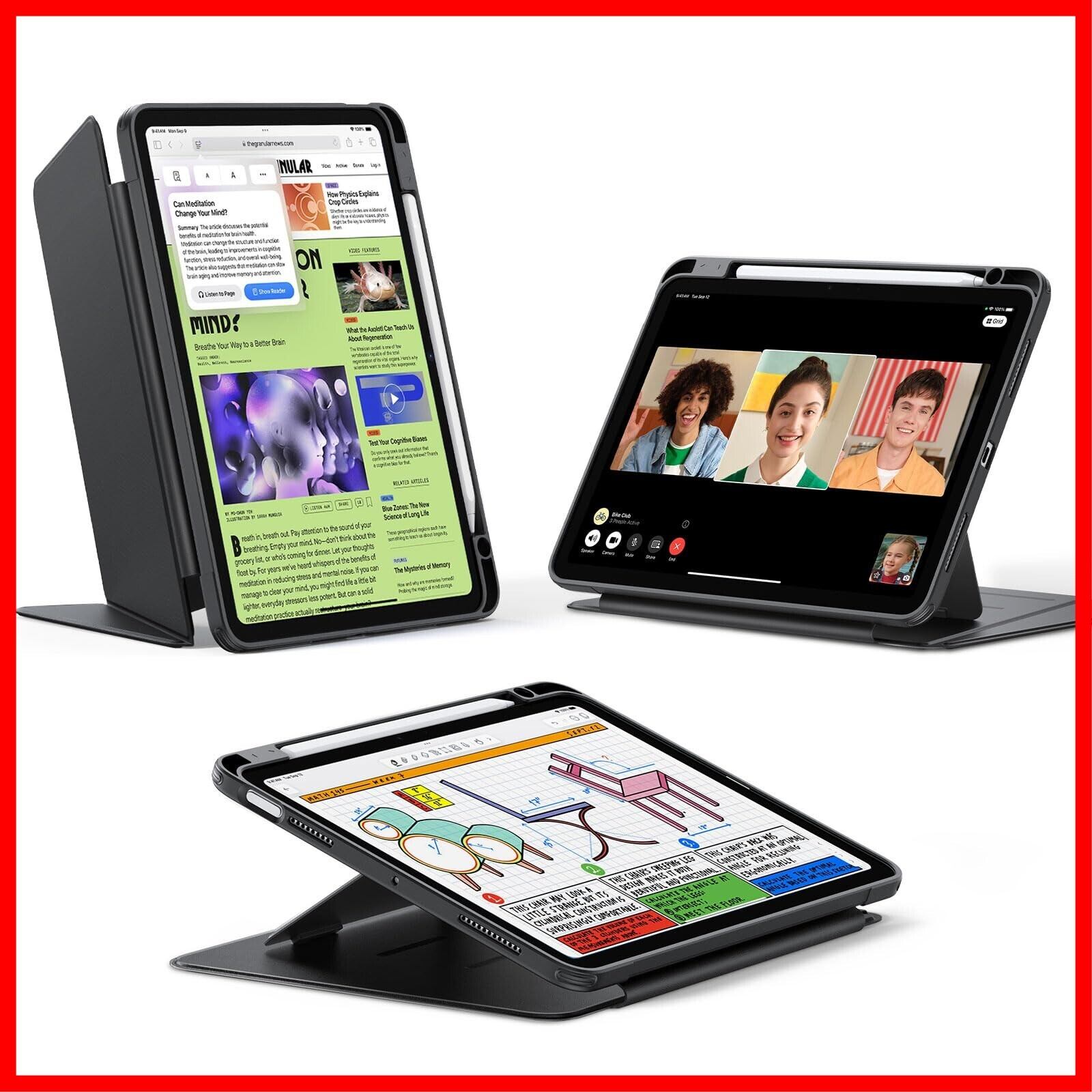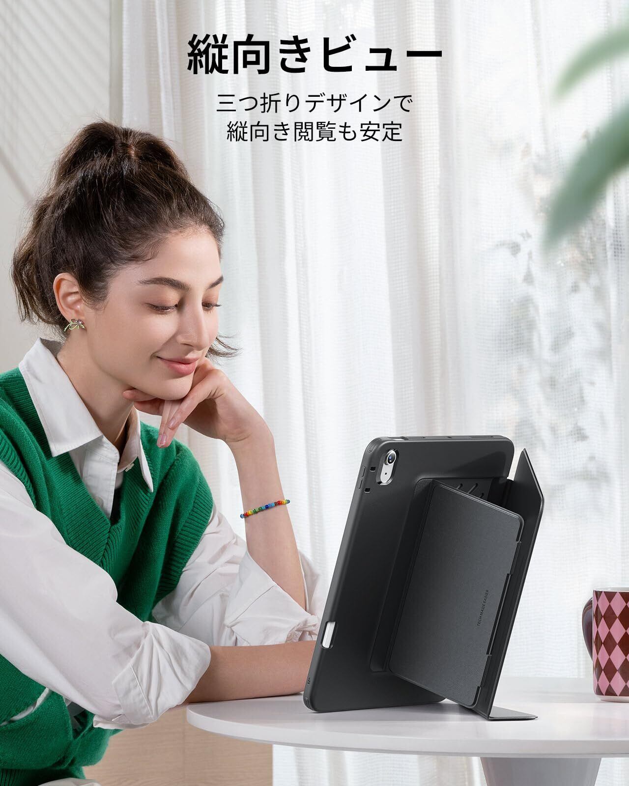ESR iPad Air 11インチ ケース (M3/M2、2025/2024) iPad Air 第5/4世代 専用カバー (2022/2020) ペン収納 縦横スタンド対応 マルチアングルケース 耐衝撃 安定設計 Flipシリーズ ブラック
