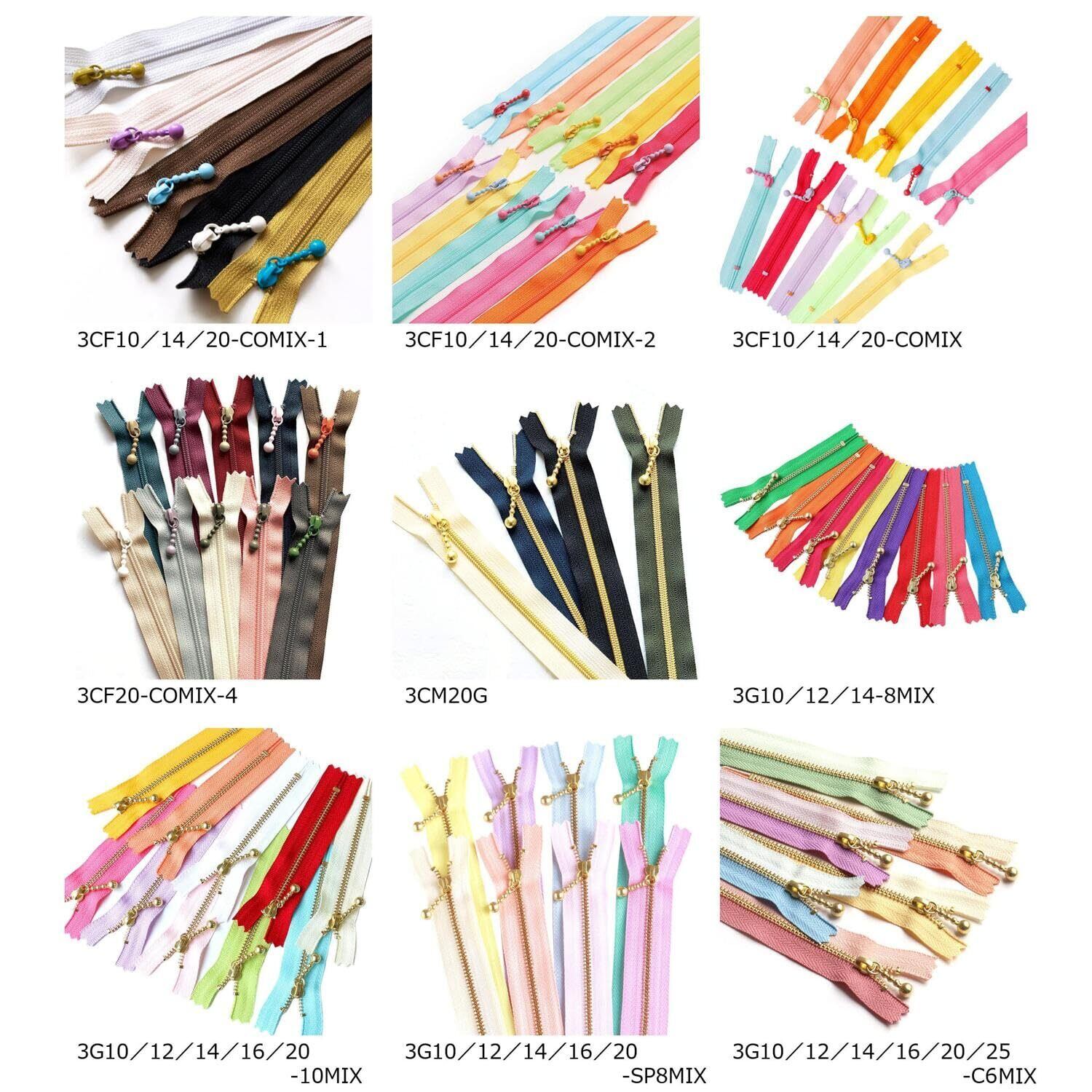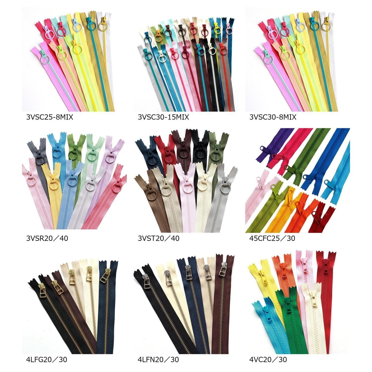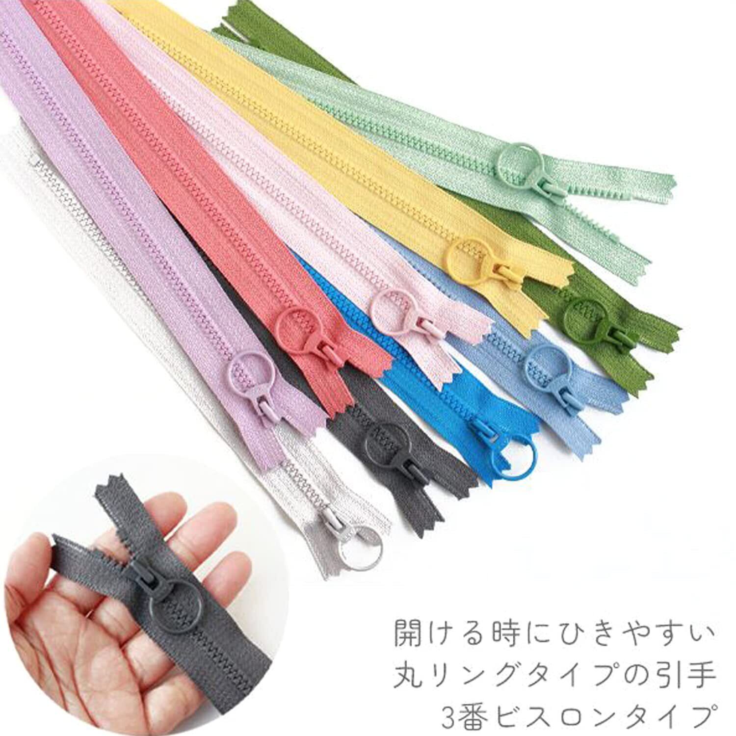 Y.K.K. リング付きビスロンファスナー くすみカラー 40cm 10色各1本入 3VSR40-10MIX