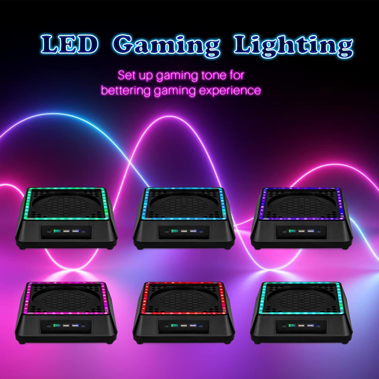 【6色LEDライト】:独特のRGBランプ設計で、多種の色を変えることができ、6色の単色と1色の混合色を含む複数の色があり、Xbox Series Xゲームのために独特な雰囲気感を醸し出すことができます。独立したタッチスイッチが付いており、いつでもカラー変更またはオン/オフできます。