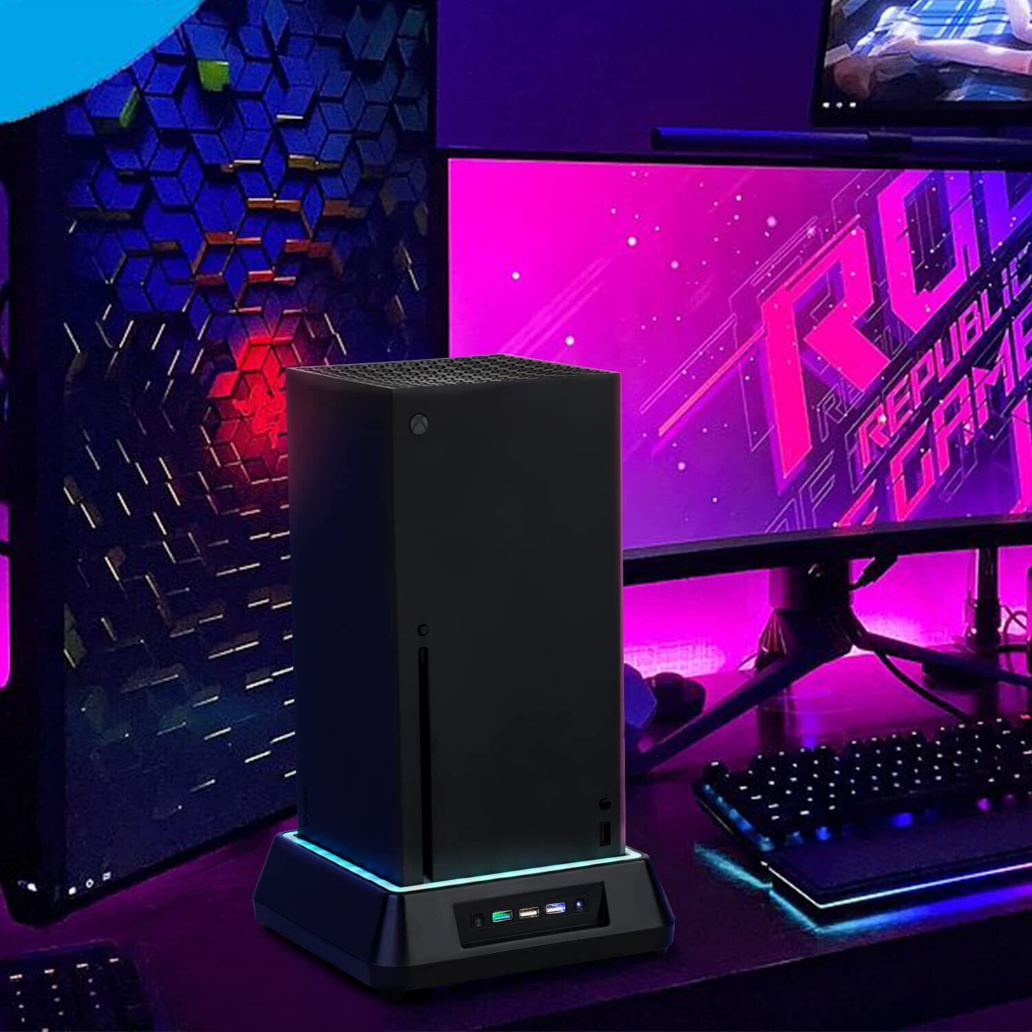 Xbox Series X 用冷却ファン スタンド XboxシリーズXのみ対応 超低ノイズ & 6色RGBライト付き & 3段階速度調整可能 & 3つの予備USBポート (データ送信の機能付き) Xbox Series Xファン アクセサリー ブラック(Black)