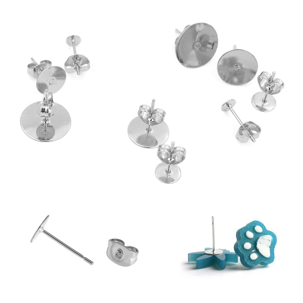 サムコス 約200個セット 丸皿 ピアス パーツ ゴールド シルバー 2色100ペア 5サイズ 3mm 4mm 5mm 6mm 8mm 平皿 台座付き キャッチ付きピアス 芯付ピアス金具