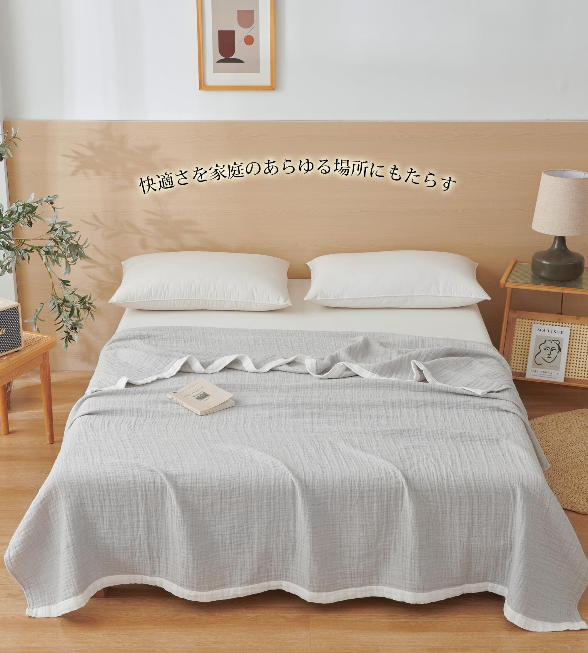 【吸湿性と通気性に優れ】ガーゼは吸湿性と速乾性に優れた綿100%を使用しており、暑い季節に汗をかいてもすぐに汗を吸収し、発散してくれるのでサラサラと快適です。 そして雨の夜。ガーゼ生地は、市販の類似品とは異なり、高密度織りを採用し、ヨコ糸の間隔を短く抑えることで、毛抜けやほつれを最小限に抑え、耐久性を向上させました。四重織りガーゼケットは肌にフィットしやすい適度な厚みで快適な寝心地を提供します。暑い夏でも蒸れにくく、サラッと快適な睡眠をお楽しみいただけます。