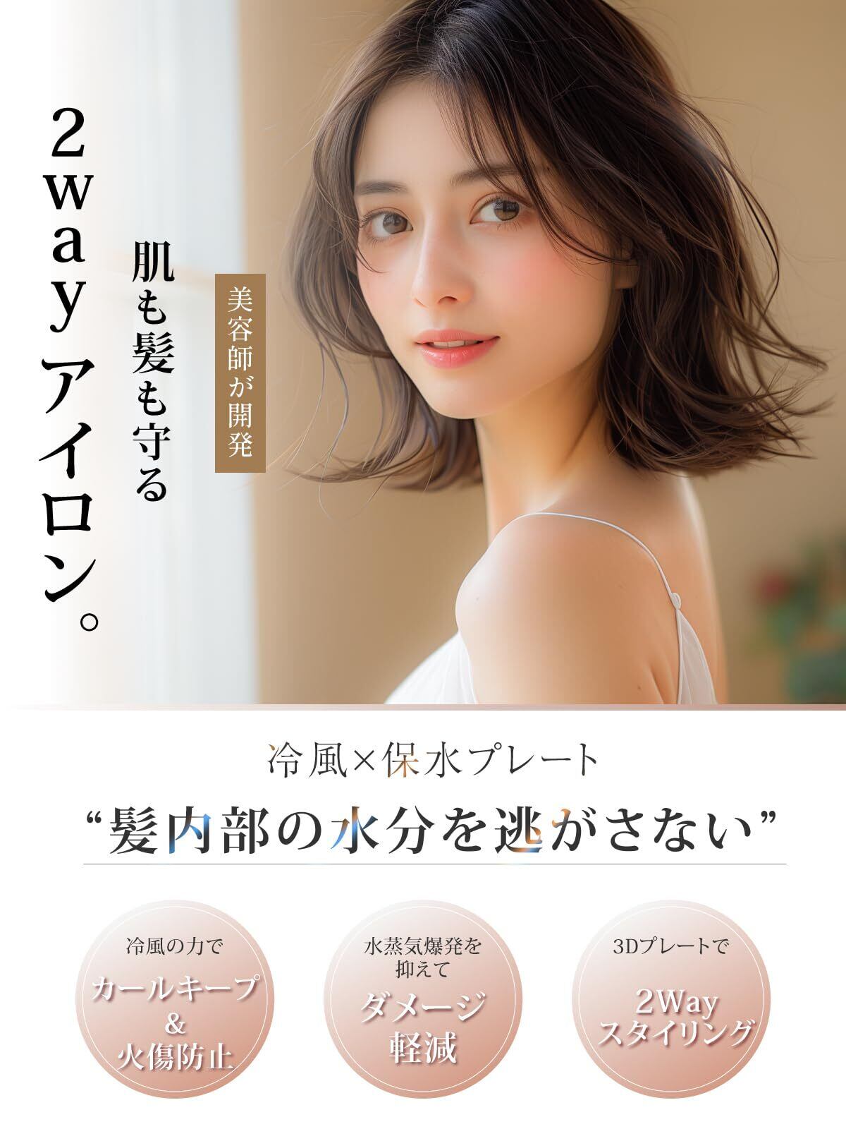 Iletile (アイルティル) エアカーリングアイロン 【美容師が開発】 火傷ほぼゼロ設計 ヘアアイロン 2way 水蒸気爆発を起こしにくい MAX200℃ 海外対応 カールアイロン ストレートアイロン