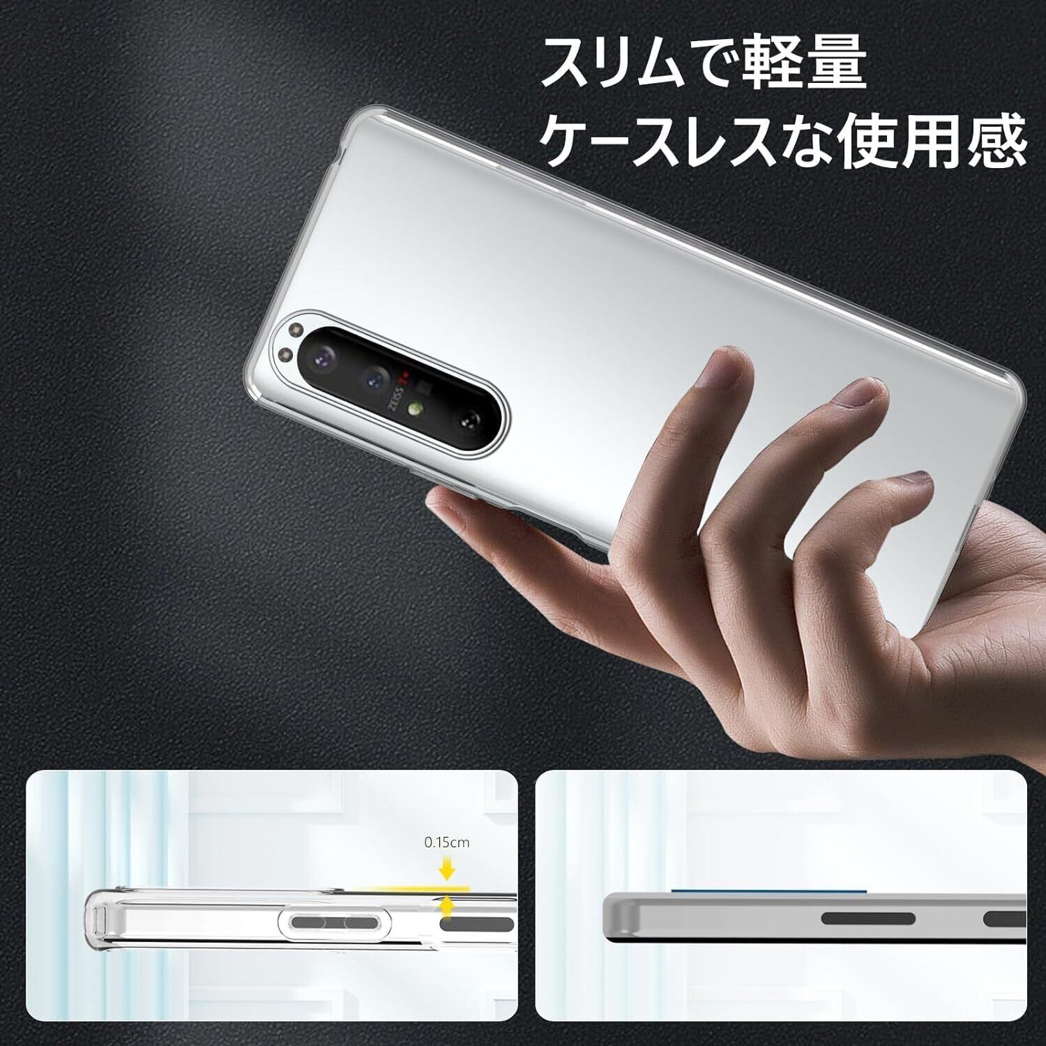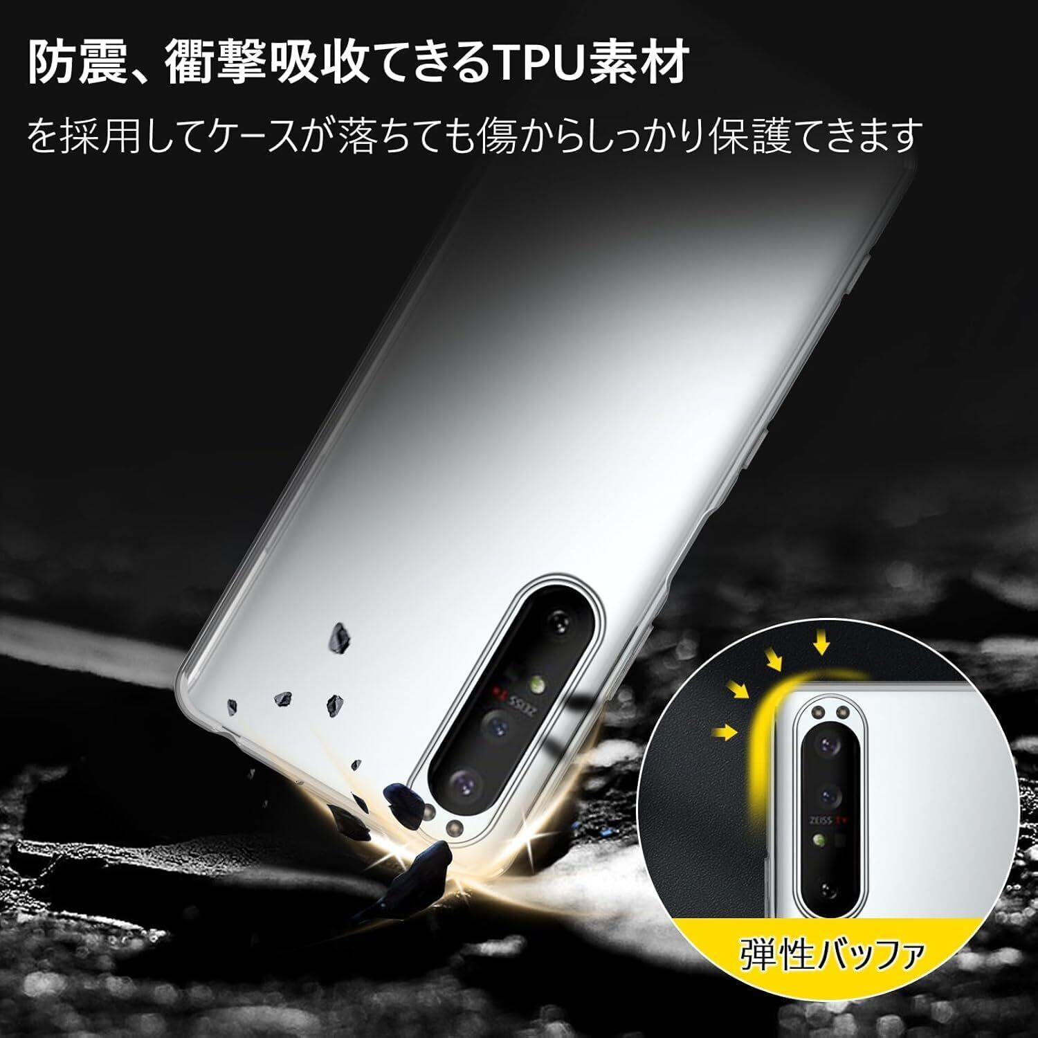 【透明感漂う・黄変防止】超精度の透光分子を持ち、背面の光透高透過率。環境に優しく、無毒無味の高品質素材採用して抗酸化処理が施されており、高い透明度を長期間維持します。厳選したTPU素材で、本来の崇高な美しさと高級感を損なわなく、いつものスマホに上品さをプラス!更に、余計な装飾も無くシンプルで完璧にエクスペリア1IIIの上品さを忠実に再現。不覚にも見惚れてしまいます。