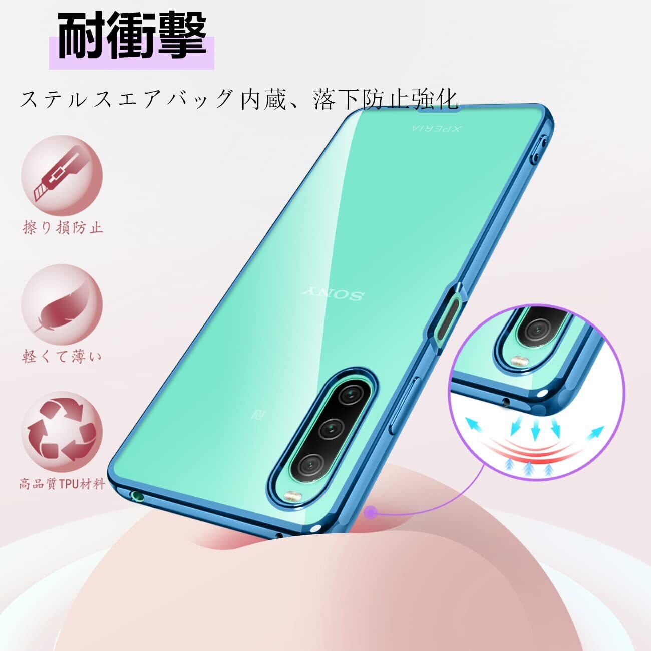 Xperia 10 IV ケース クリア SO-52C スマホケース SOG07 カバー 衝撃吸収 薄型 TPU 軽量 衝撃吸収 ストラップホール付き 全面の保護 (ブルー)