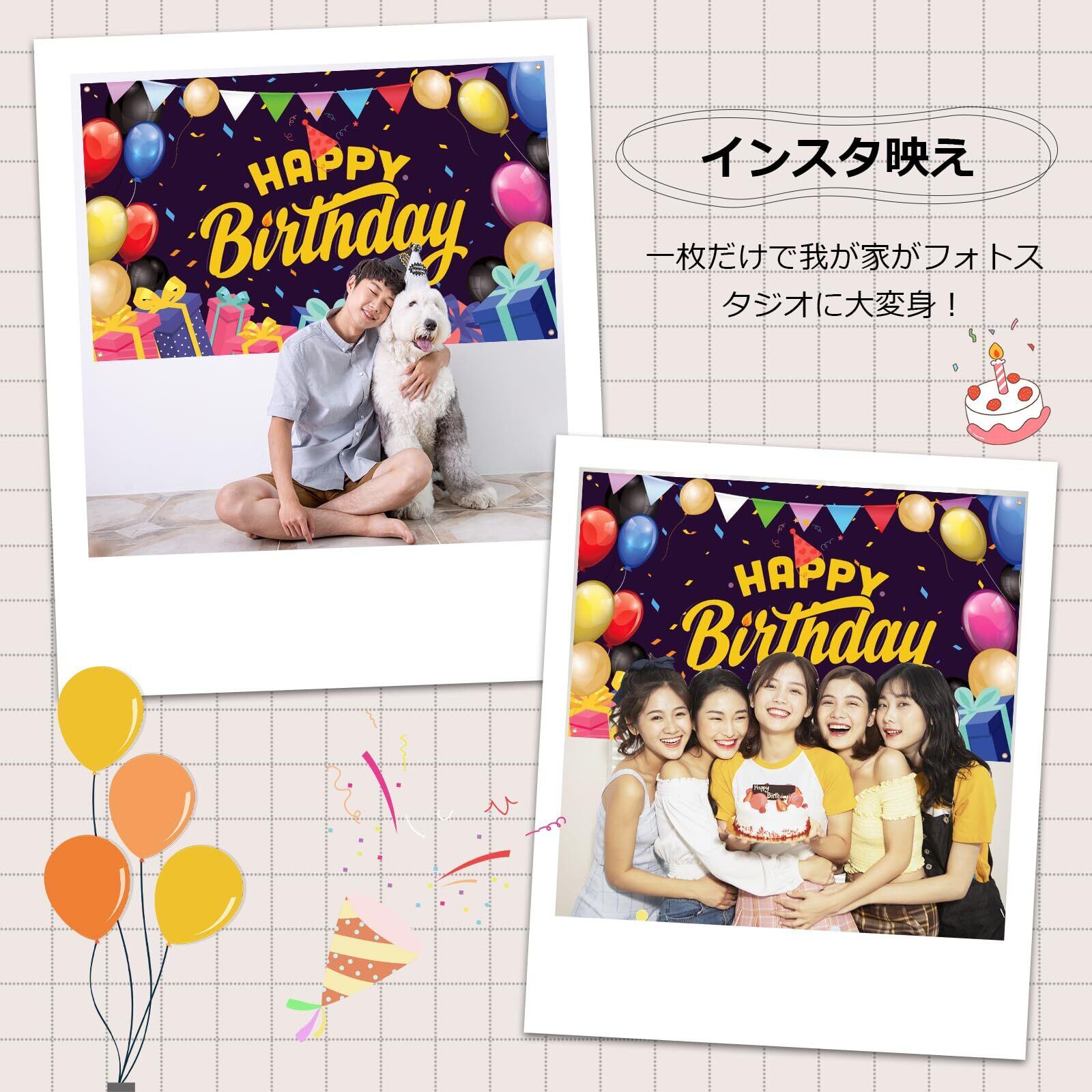 Paready バースデー タペストリー 誕生日 飾り付け 壁掛け 大判 フォトポスター 写真背景 壁飾り Happy Birthday パーティー 飾り おうちスタジオ シンプル おしゃれ 装飾 大人 女の子 男の子 カラフル