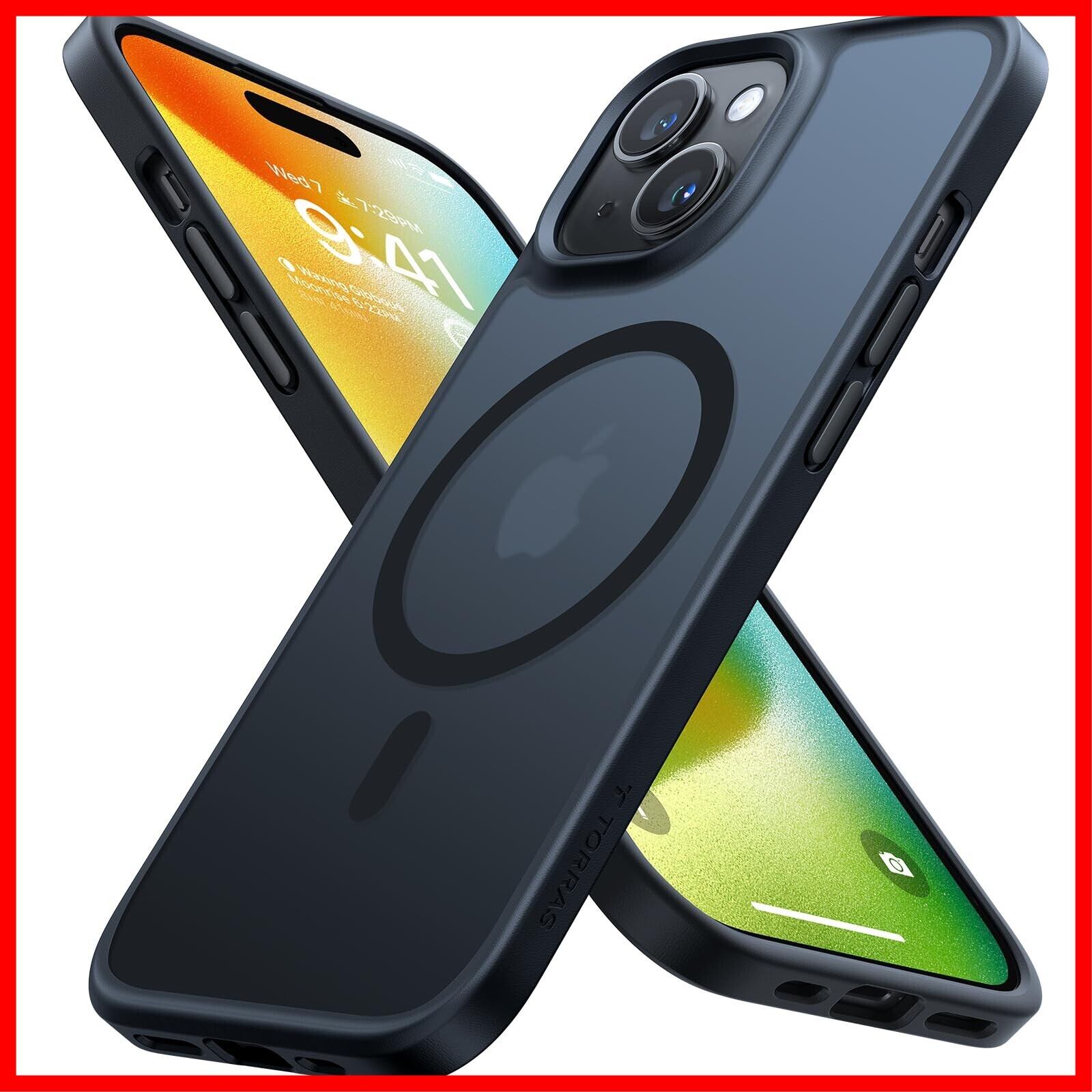 TORRAS iPhone 14/13 用 ケース【米軍進化耐久性・高精密 Magsafe対応】マグネット搭載 耐衝撃 ワイヤレス充電 半透明 マット 黄ばみなし ストラップホール付き マグセーフ対応 ブラック