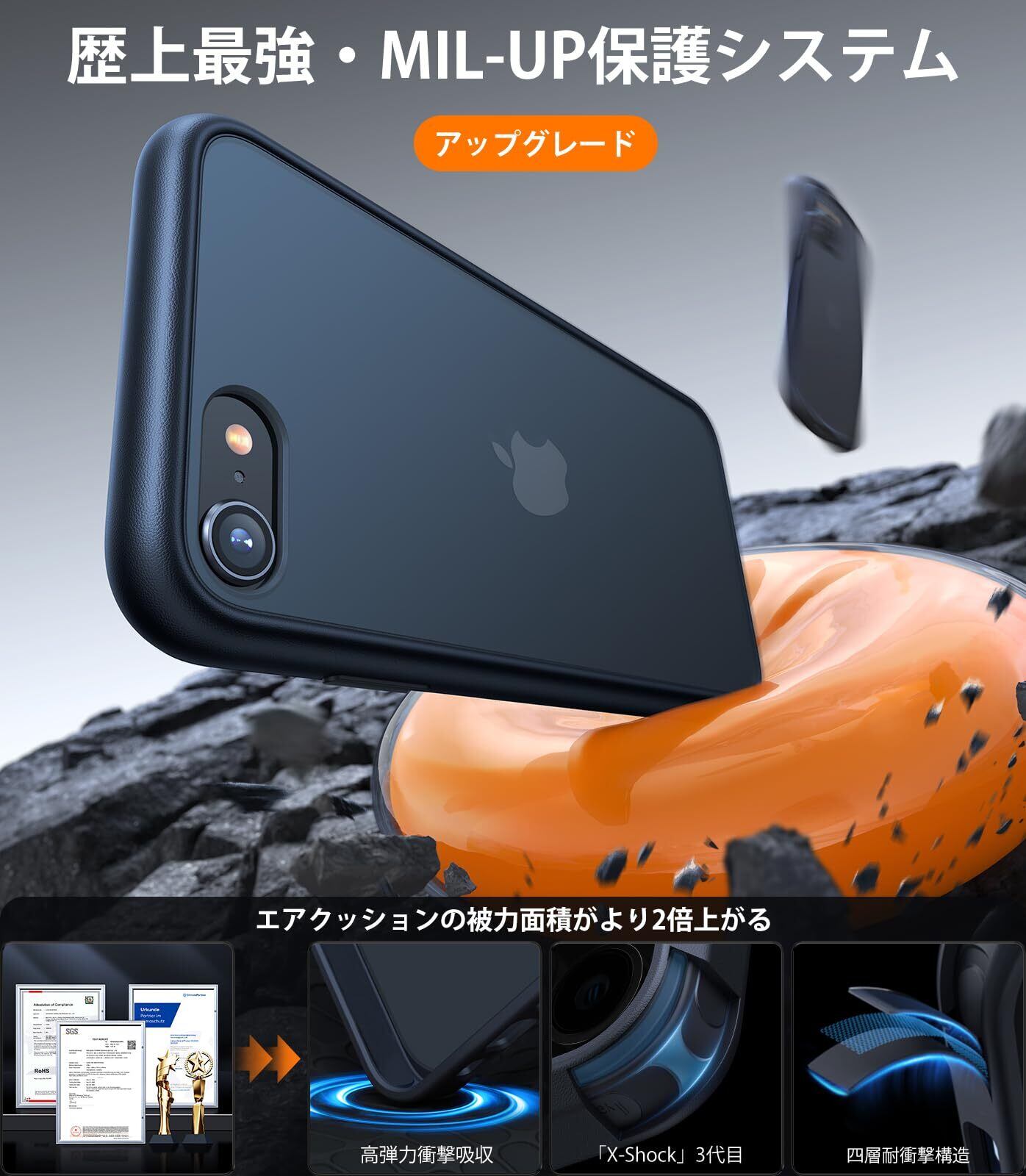 【2025米軍進化耐久性】TORRAS iPhone se se3 se2 8 7 ケース 半透明 耐衝撃 マット感 黄ばみなし レンズ保護 ストラップホール付き スマホケース iphonese第3世代 ケース アイフォン 7 8 se2 se3 se 用 4.7インチ カバー (マットブラック)