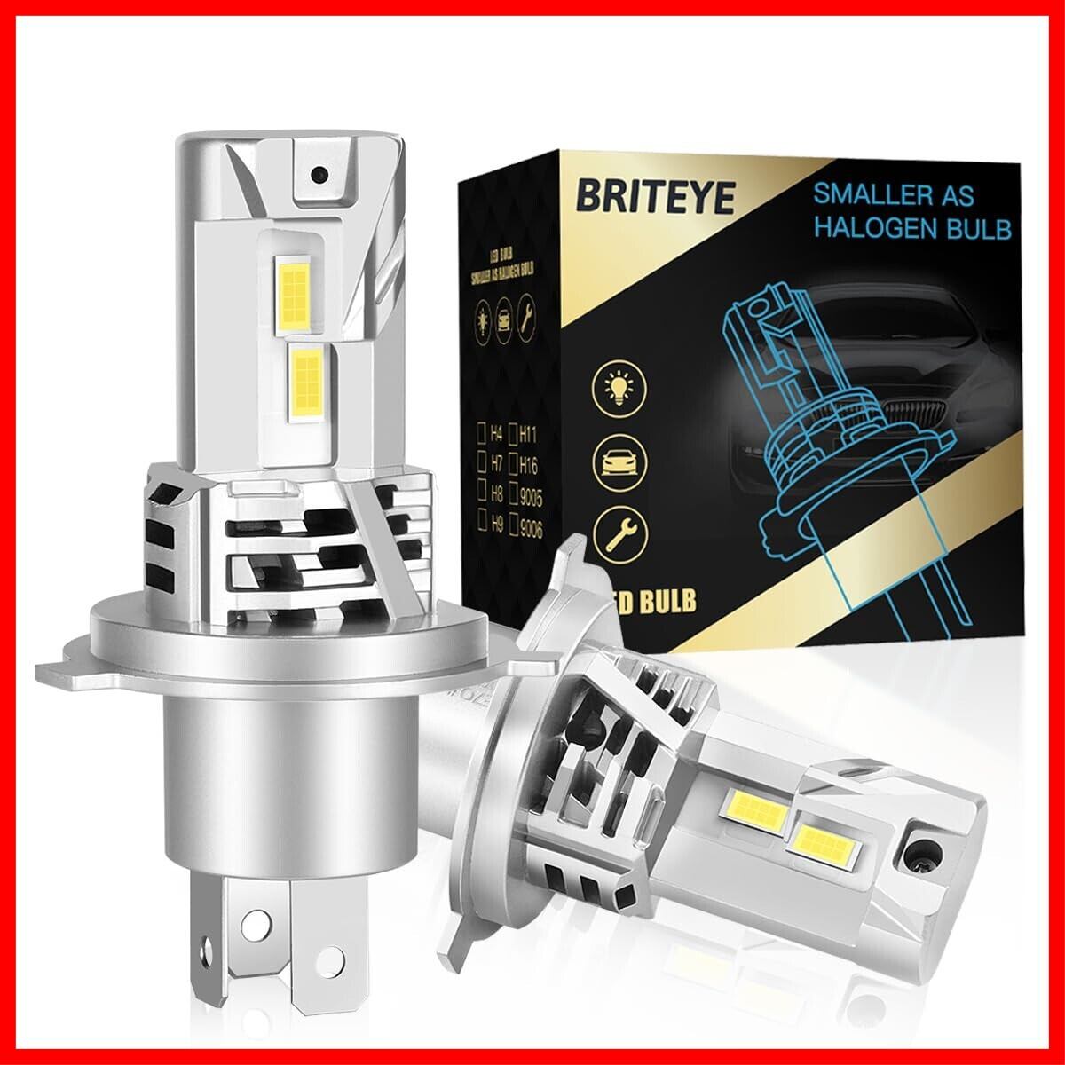 【商品 スペック・Briteye正規品】型番:H4バルブ専用(LED ハイビーム用/ロービーム用切替)/ケルビン数:6500K ホワイト/対応電圧:DC9V-18V/消費電力約30W(片方)/寿命:約50000時間以上/セット内容:LEDヘッドライトh4 2個入