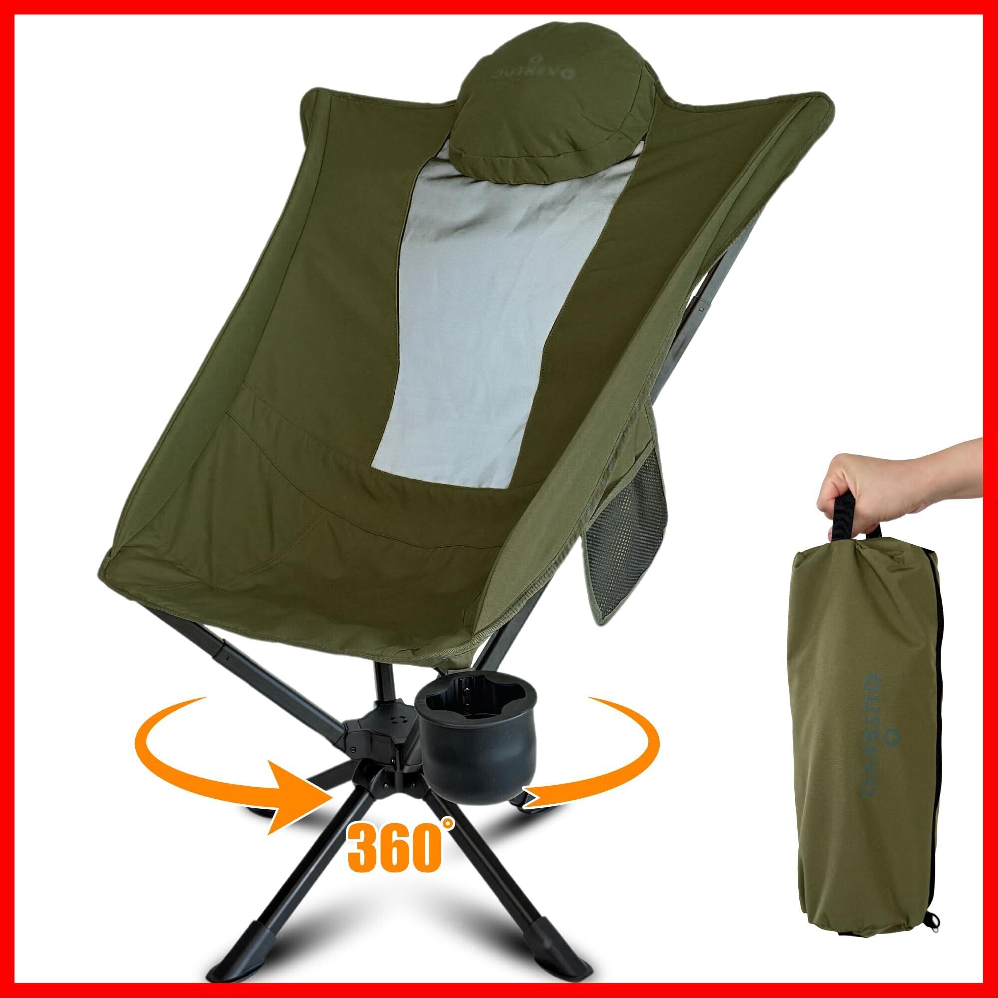OUTREVO [リボルバープラス] 360度 回転 アウトドアチェア ハイバック 背もたれ コンパクト 軽量 折りたたみ ワンタッチ 椅子 収納袋付き アウトレボ (オリーブ)
