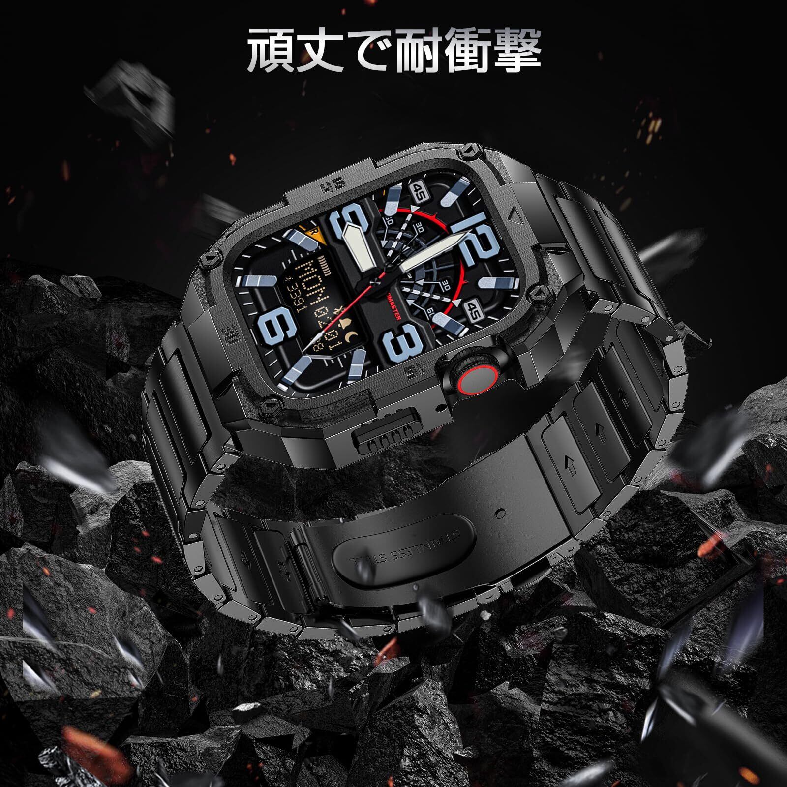 【ステンレス+TPUケース二重保護】Apple Watch 10 46mm専用ステンレス一体型バンドは、316Lステンレス鋼フレームと内蔵TPUケースの二重構造で360°全面保護を実現。耐衝撃性に優れ、日常使用からスポーツシーンまで高い耐久性を発揮します。