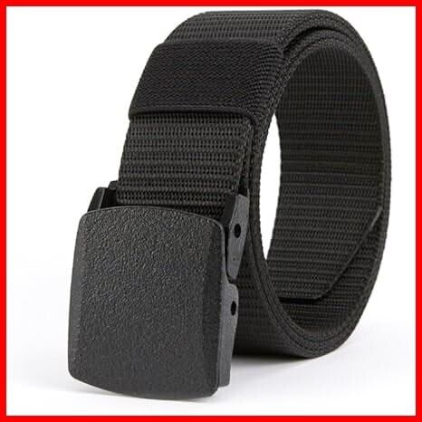 [TIKAKU] ナイロンベルト 軽量 樹脂製バックル 【ワンタッチ着脱・穴なし仕様】 作業用 ミリタリー ベルト フリーサイズ 120cm 幅3.8cm