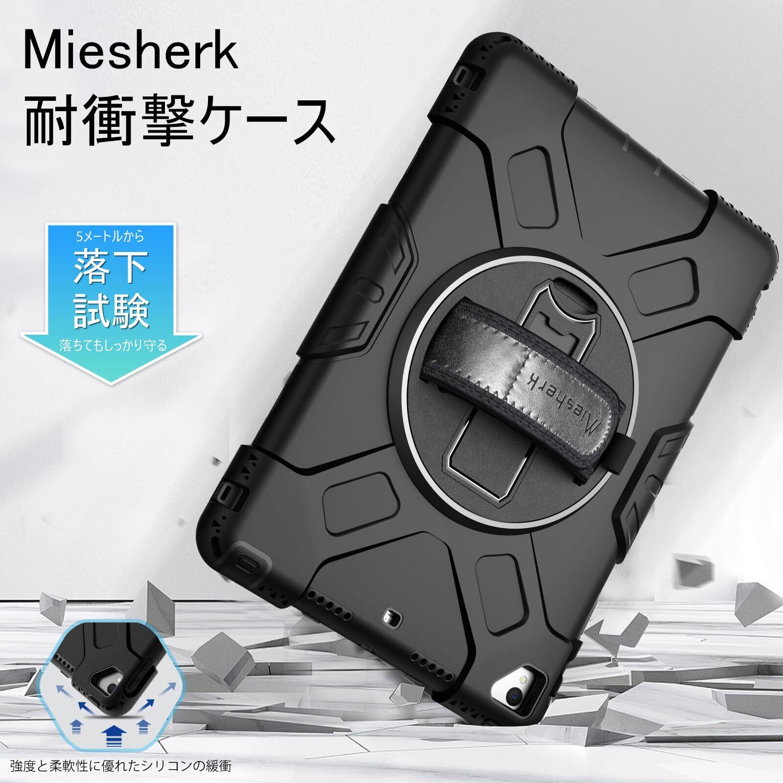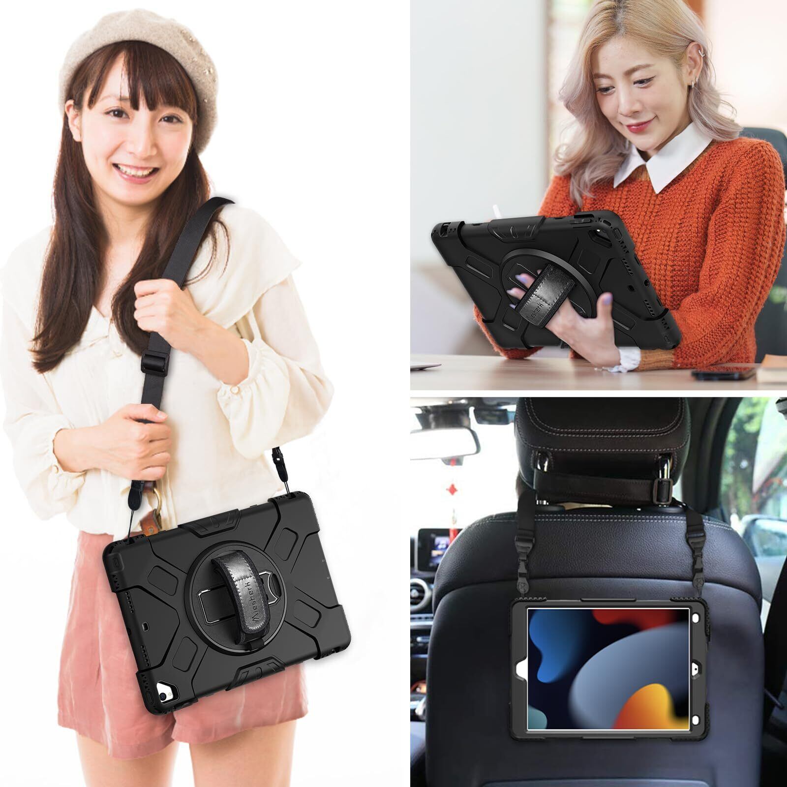 Miesherk ipad 9世代 ケース ipad 10.2インチ 第9/8/7世代(2021/2020/2019) 全身保護ケース 耐衝撃 頑丈 防塵 360°回転ipad スタンド ペン収納 ショルダー/ハンドストラップ 全面保護カバー (ブラック)