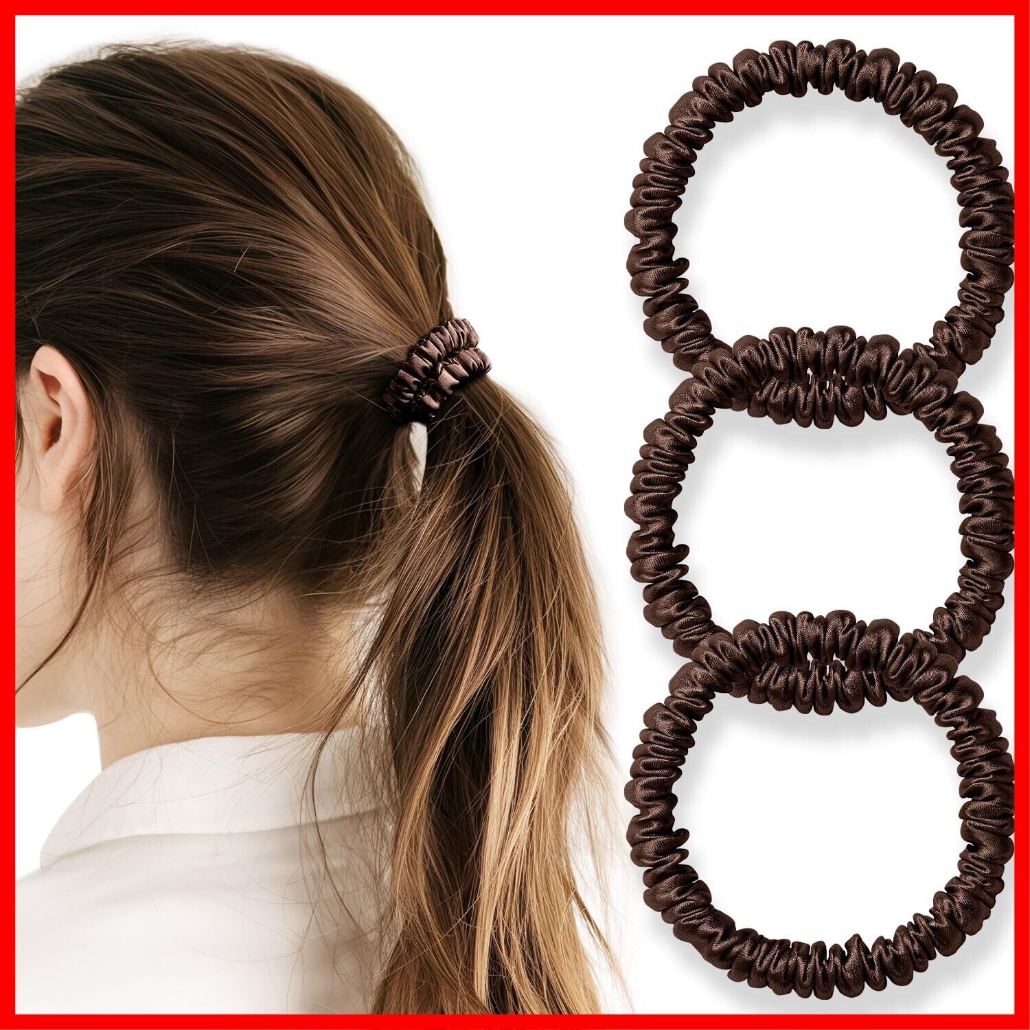 シルク ヘアゴム 3個セット 100%天然シルク 6A級 摩擦軽減 静電気防止 髪に優しい 跡がつかない 髪ゴム 高弾性 シュシュ おしゃれ 大人 女性 IRIYULI (ブラウン*3)
