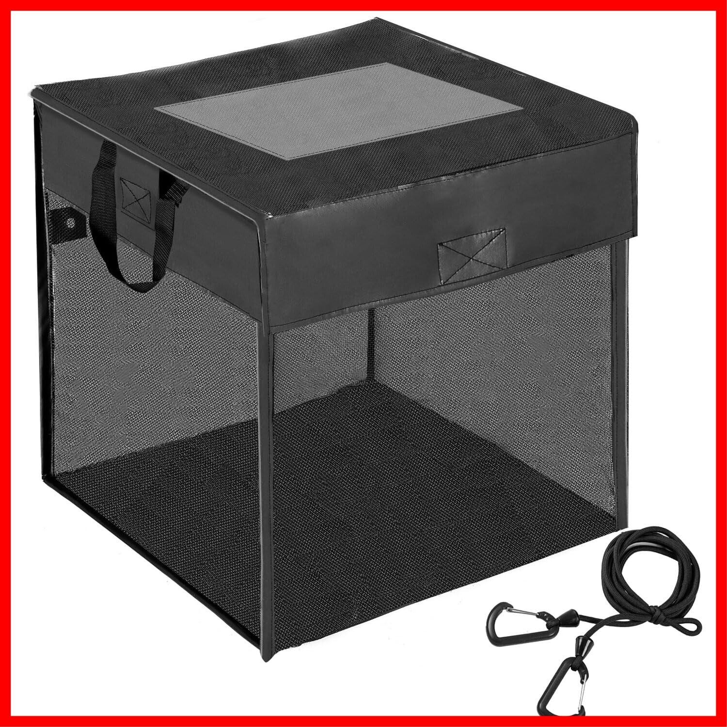 商品内容:ゴミネットBOX1個 、固定用フック1個。サイズ:縦44cm / 横44cm 重量:0.8kg 色 : 黒 原産国 : 中国。素材:持ち手:ナイロン100% シート:PUレザー 網:PVC。