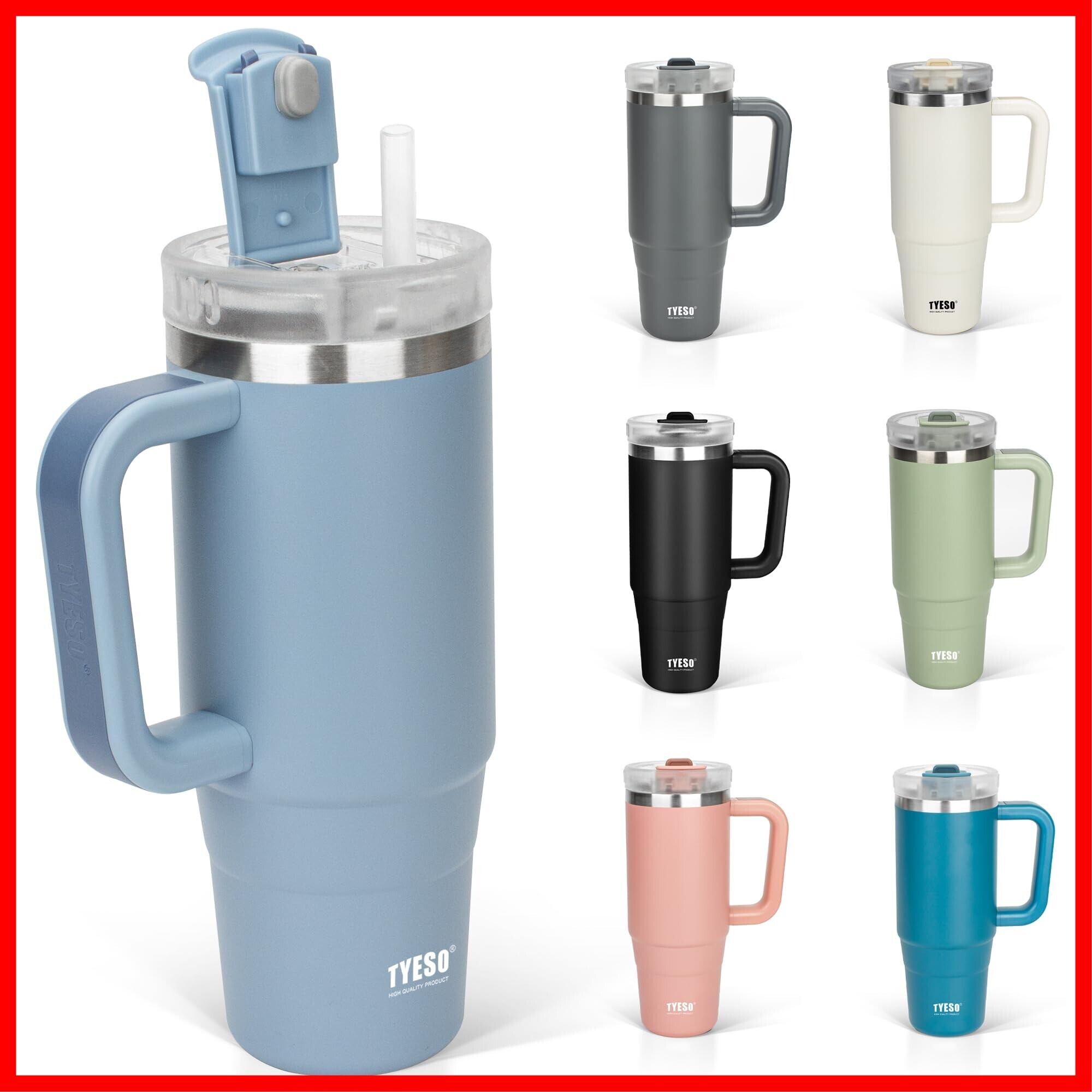 TYESO タンブラー 0.9L 水筒 保冷 ステンレスボトル ウォーターボトル ストロー 取っ手付き ジョッキ アウトドア 真空断熱 二重構造 広口 大容量 直飲 女の子 男の子 900ml スカイブルー