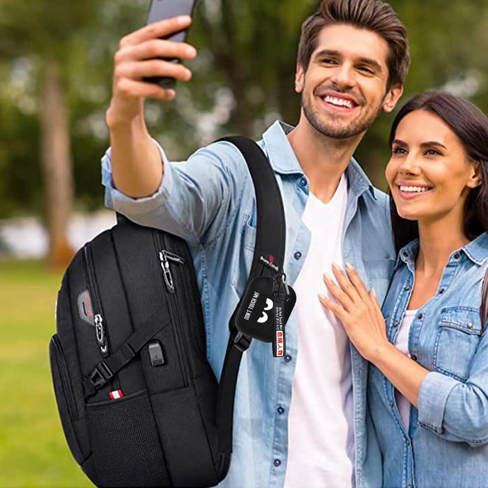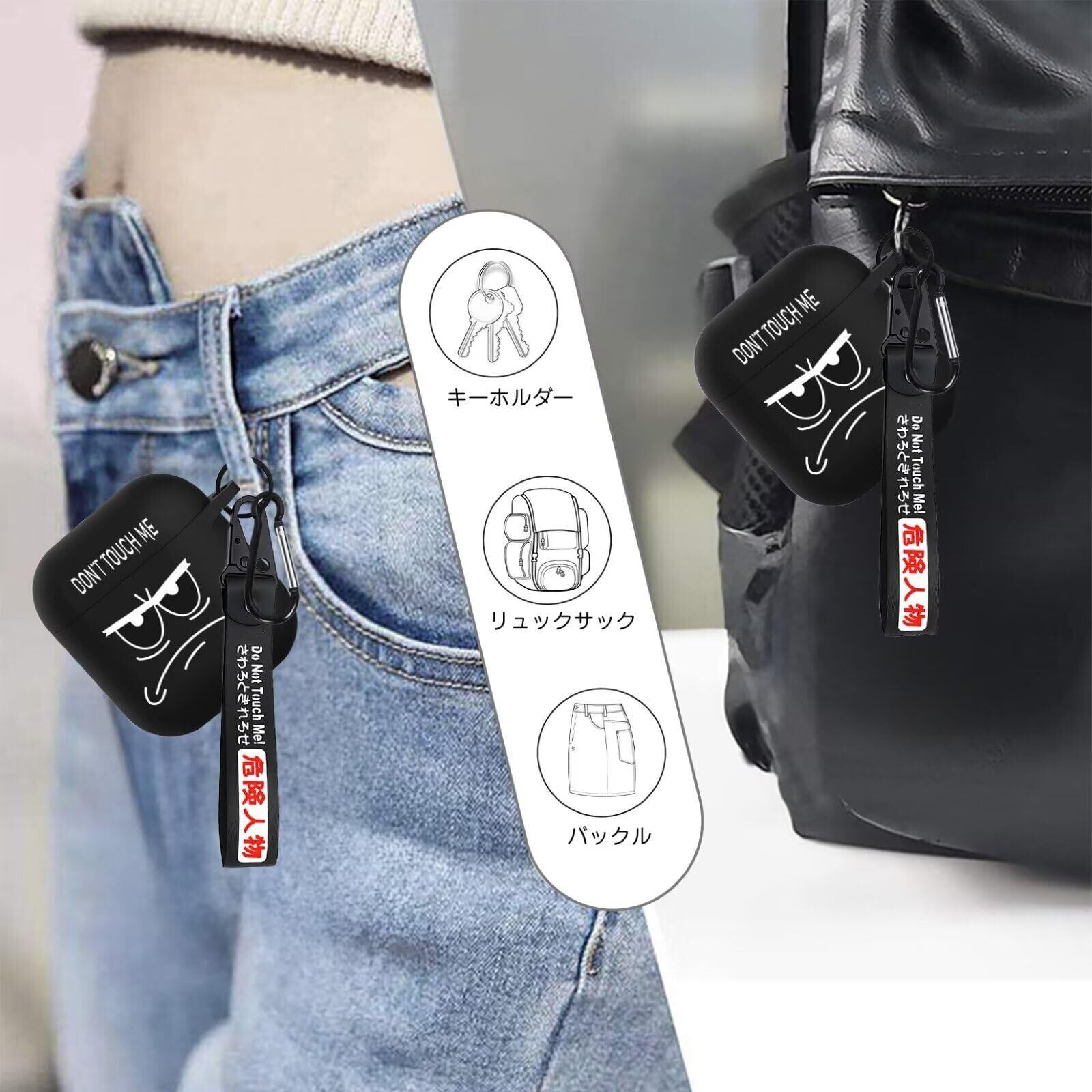 AirPods 3 ケース 第3世代 クールブラックカバー キーホルダー付き ビッグアングリーアイズ キュート Don't Touch Me な漫画耐衝撃 Airpods 第三世代 カバー ギフト メンズ ボーイズ用 滑らな保護スキン-Black-Angry