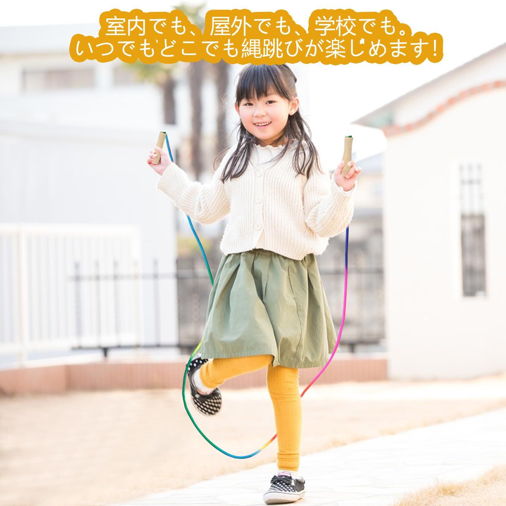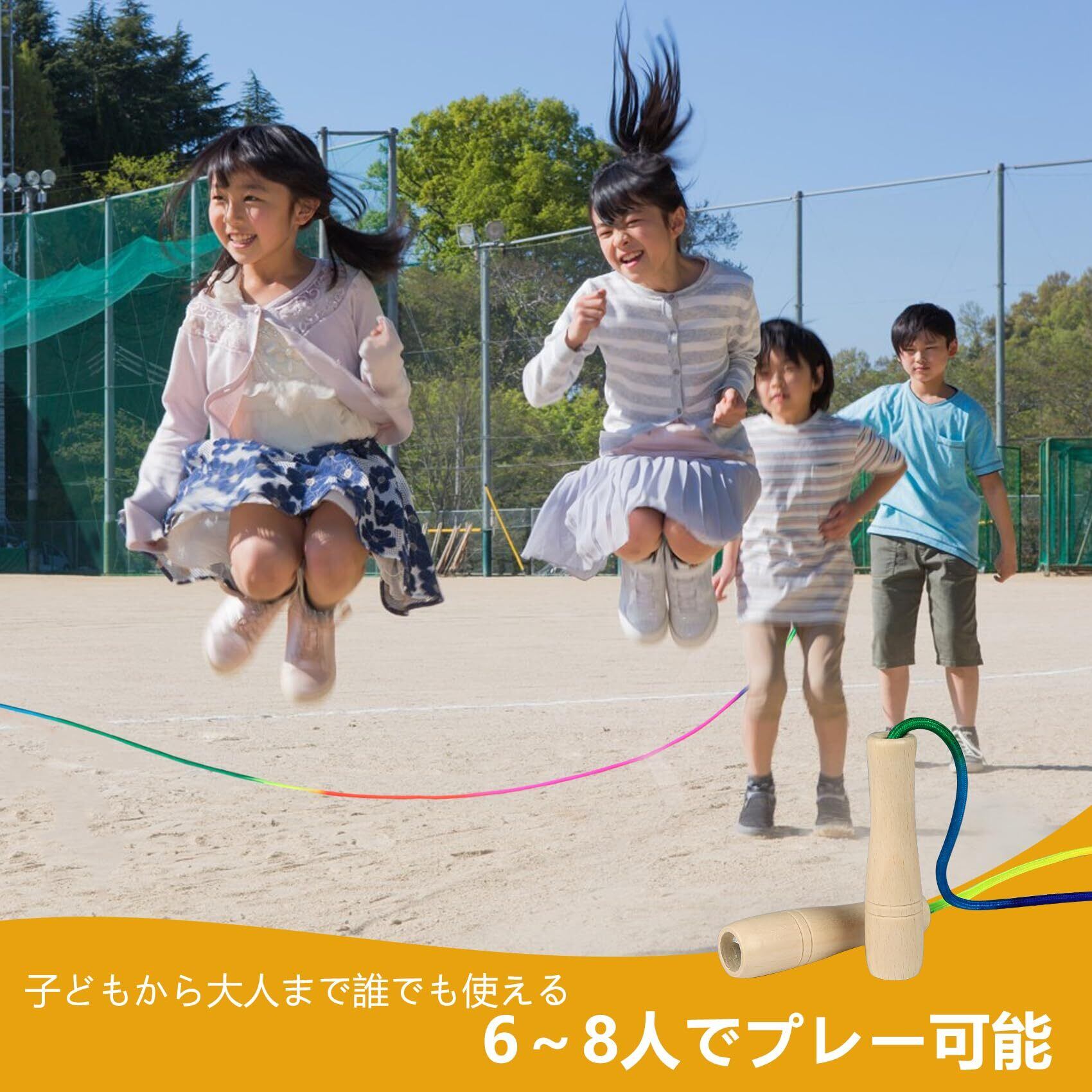 長縄跳び 大縄跳び 家庭用 集団なわとび 長なわ 5m かわいい ジャンプロープ 調節可能な大縄跳び 木柄 団体用 競技 虹色のロープ 儿童成人 運動会、体育の授業、日々の練習