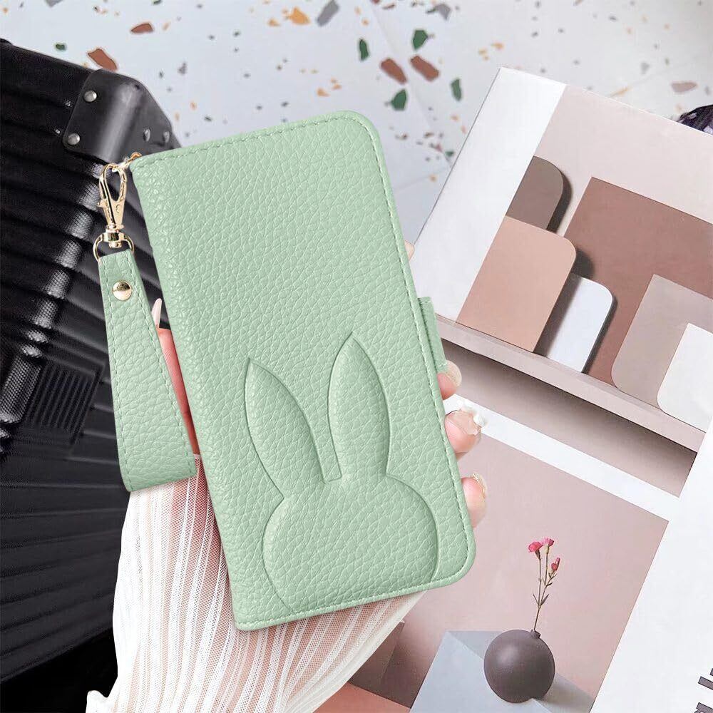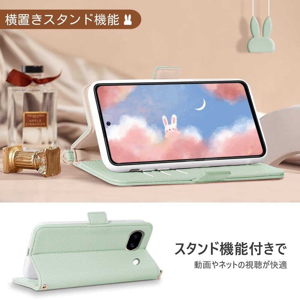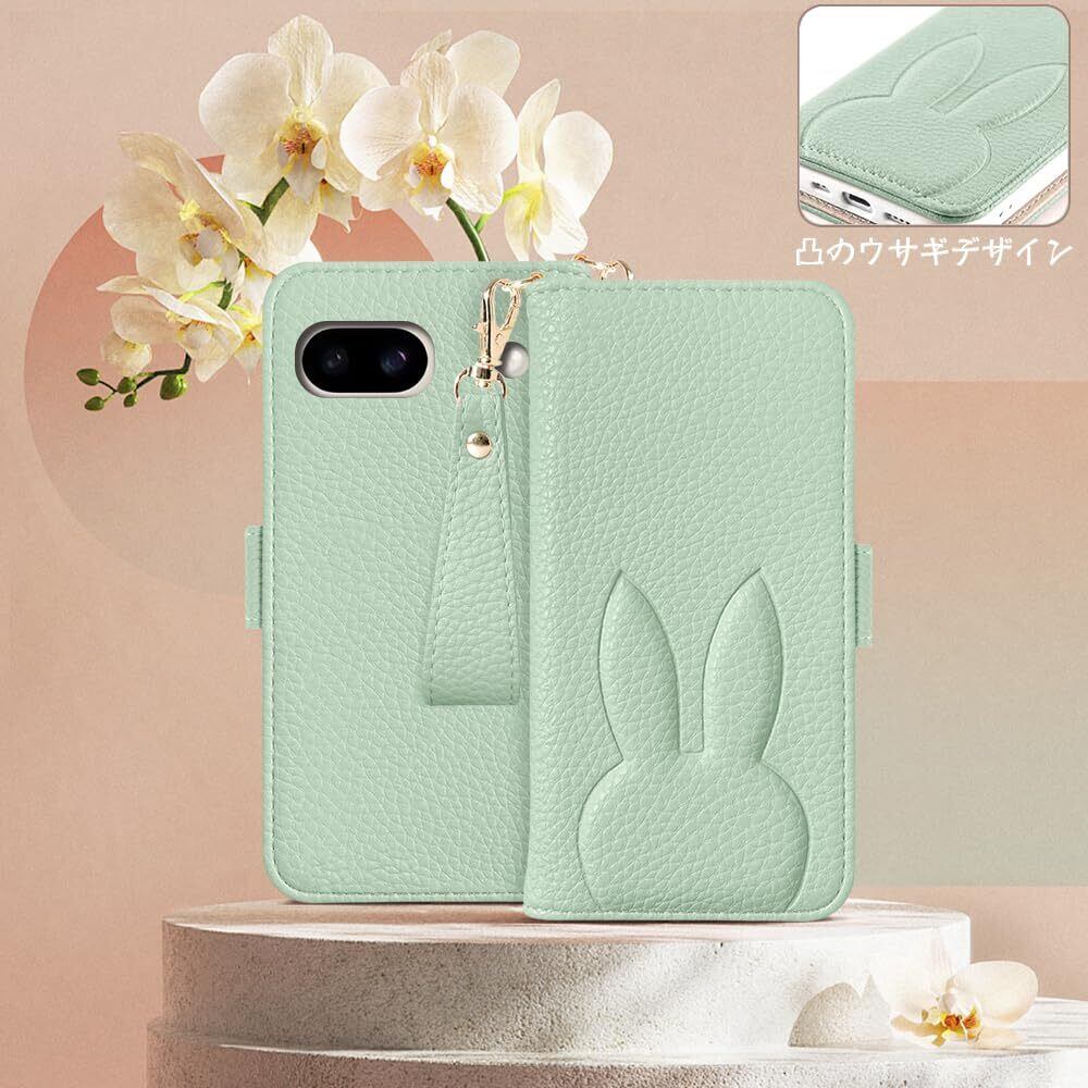 Kahper For Google Pixel 8a ケース 手帳型 人気 スマホケース Pixel 8a 携帯ケース グーグル ピクセル 8a ケース 手帳型 可愛い ウサギ どうぶつ 柄 女性 カード収納 横置き機能 googleピクセル8a ケース グーグルピクセル8a ケース 衝撃吸収 スタンド機 能付き 肌感レザーかわいい 動物柄 Pixel 8a ,6.1inch,グリーン