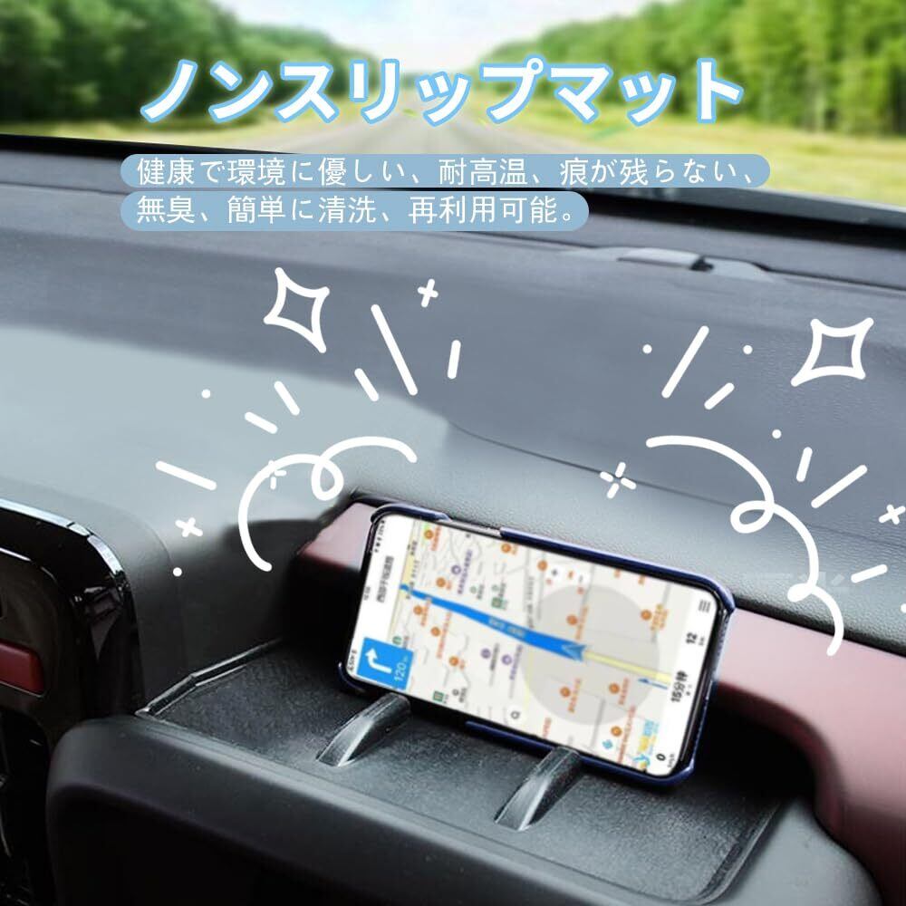 3.簡単な取り付け:専用設計で、取り付けが簡単です。工具は不要で、滑り止めマットを前方運転席のダッシュボードに置いて貼り付けるだけで完璧にフィットします。背面には3M接着剤が付いており、気温が15度以下の場合は加熱してから貼り付けてください。しっかり固定され、滑りにくいです。