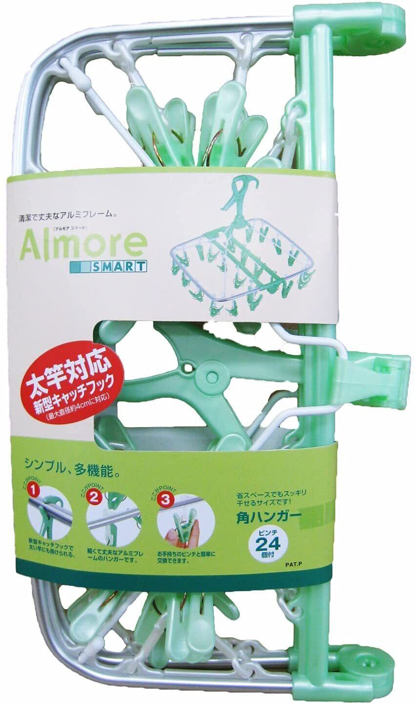 オーエ 洗濯 物干し ハンガー アルモアスマート 角 グリーン 24ピンチ 軽くて丈夫なアルミフレーム 約35×35×35cm