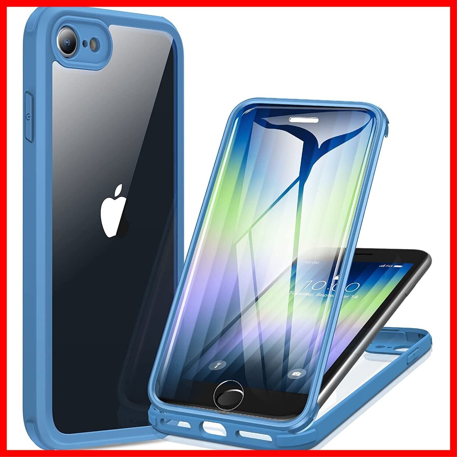 Miracase iPhone SE3 用 ケース 第3世代 スマホケース iPhone SE 用 ケース 2022 9H強化ガラス 4.7インチ フルカバー 360°全身保護 ワイヤレス充電対応 (カプリブルー)