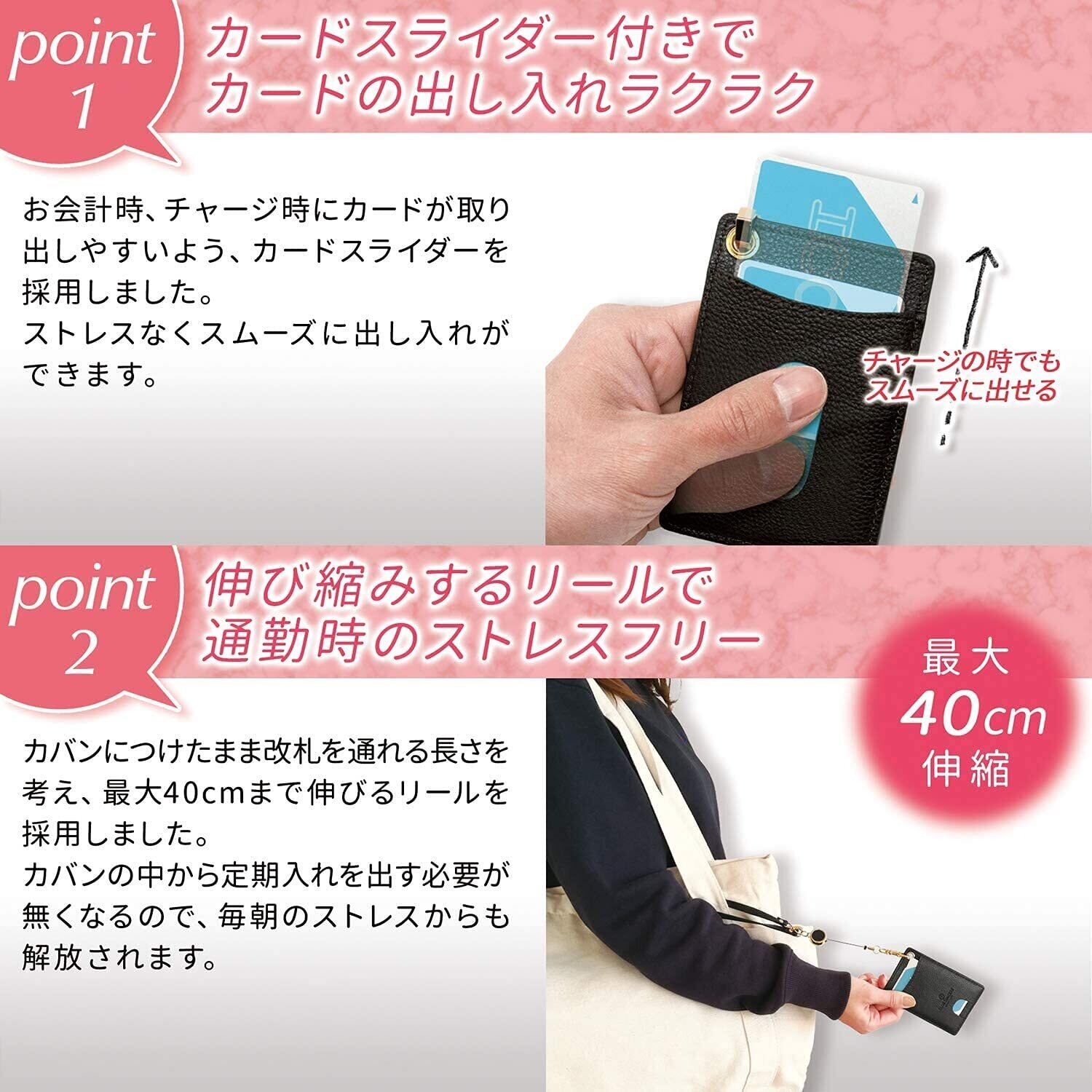 【タッチもチャージもスマートに】 よくある伸縮リールに比べ、このパスケースは30cmと少し短くなっています。 バッグから改札のタッチパネルや会社の入室用タッチパネルまでの距離を考慮し、最小限に抑え耐久性を上げました。 毎日使うものだからこそ、どんな状況でも長く使える商品を目指した設計です。