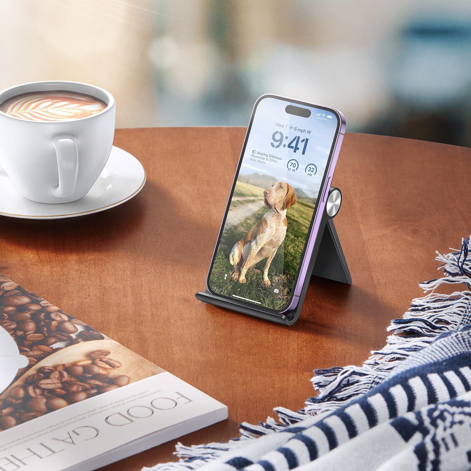 UGREEN スマホスタンド 卓上用 携帯電話スタンド Sサイズ ABS素材 iPhone 14/13/12/mini/Pro/ProMax/スタンド 折りたたみ式 100°角度調整可能 4~7.9インチのiPhone Androidスマホ タブレットに適用 (黒)