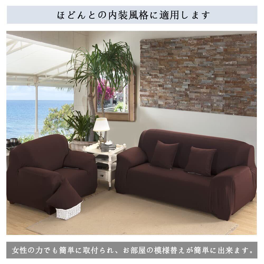 HomeFirst ソファーカバー 2人掛け 肘付き 北欧風 ソファーカバー 無地 縦横弾力 ストレッチ フィットタイプ 滑り止め 伸縮素材 キズ防止 ソファー保護 柔らかい 超便利 洗える A(チョコレート)