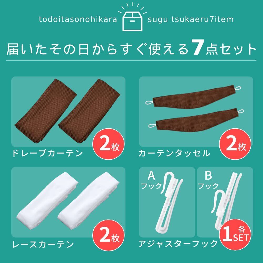 アイリスプラザ(IRIS PLAZA) すぐ使えるカーテン4枚セット 幅100cm×丈178cm レースカーテン付き 丸洗いOK ほどよい透け感(非遮光) アジャスターフック・タッセル付き 7点セット アイボリー