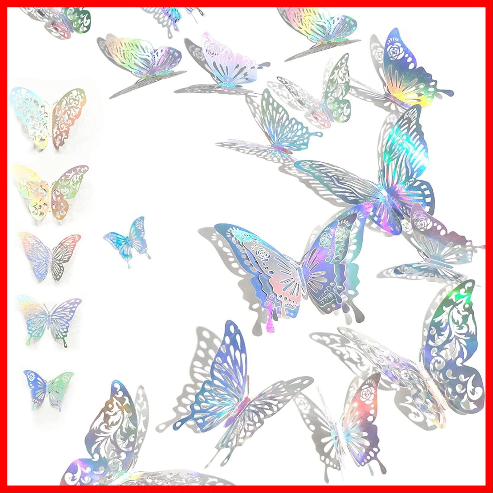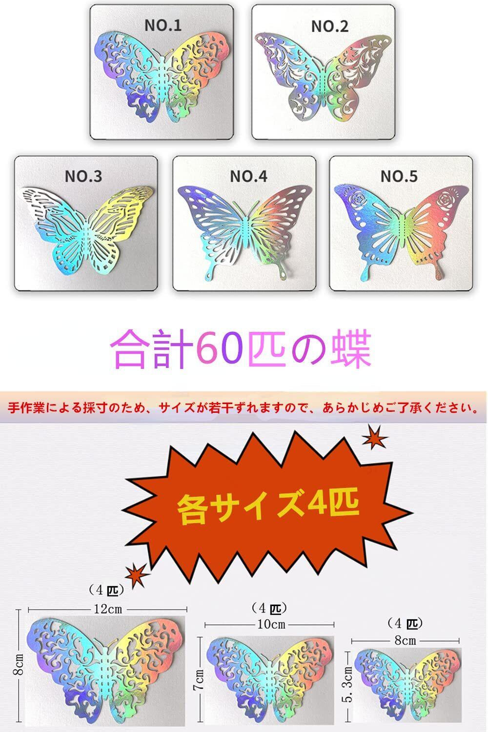 LIKENNY 立体 3D 蝶 ウォールステッカー 部屋飾り シール式ステッカー 飾り ウォールデコ 玄関、寝室の飾り て取り付けやすい 開店のお祝い、 誕生日 装飾 バタフライ 60枚入り(銀)