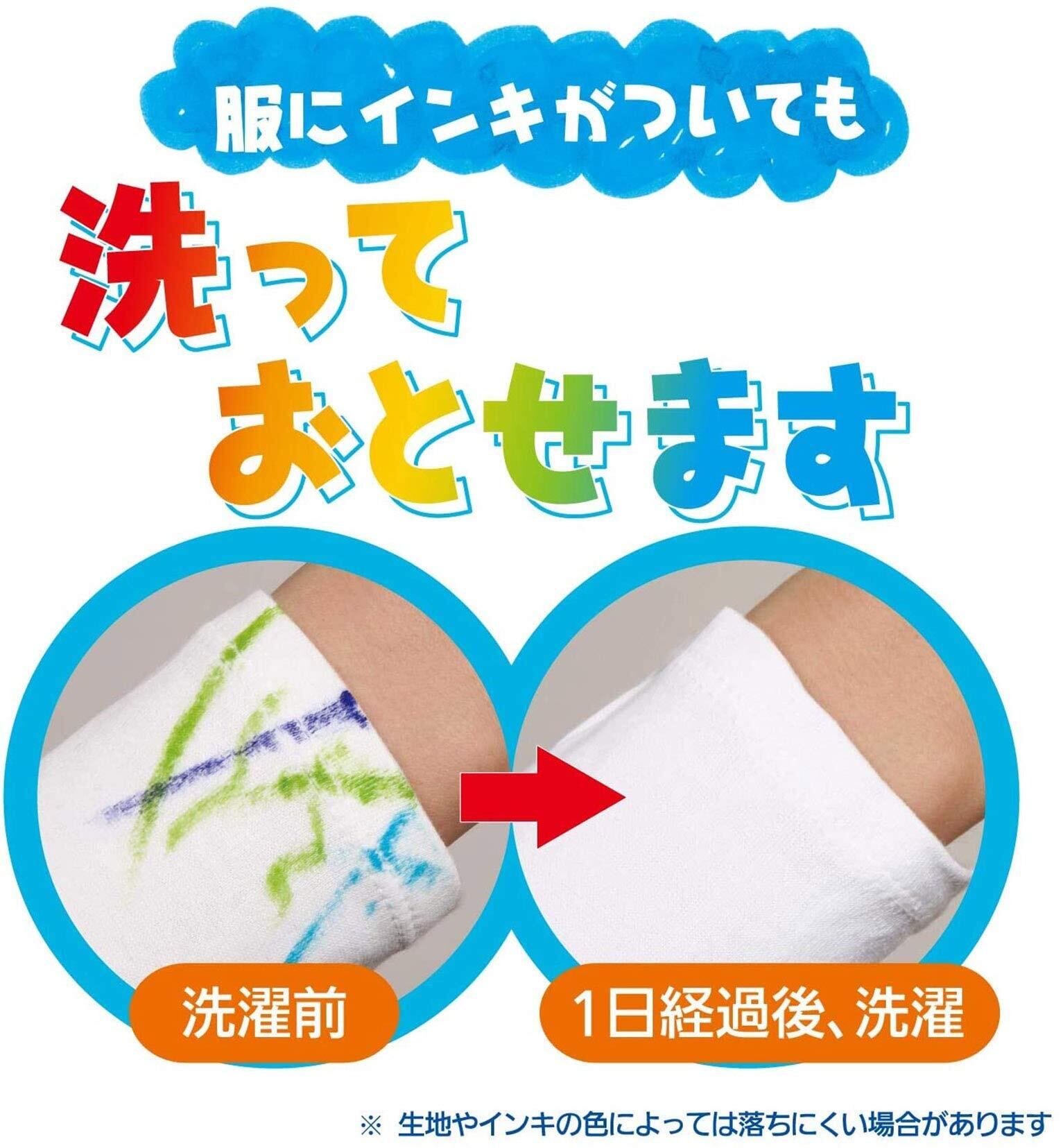 お絵かきする子供は服を汚しがち。服についても洗ってインキをおとせるのカラーペンの12色セット。ヨーロッパ玩具安全性規定EN71に適合した安全性の高い水性インキ。幼児の誤飲に配慮した「通気性キャップ」です。小さな手で持ちやすい、「三角柱型」の握り部です。