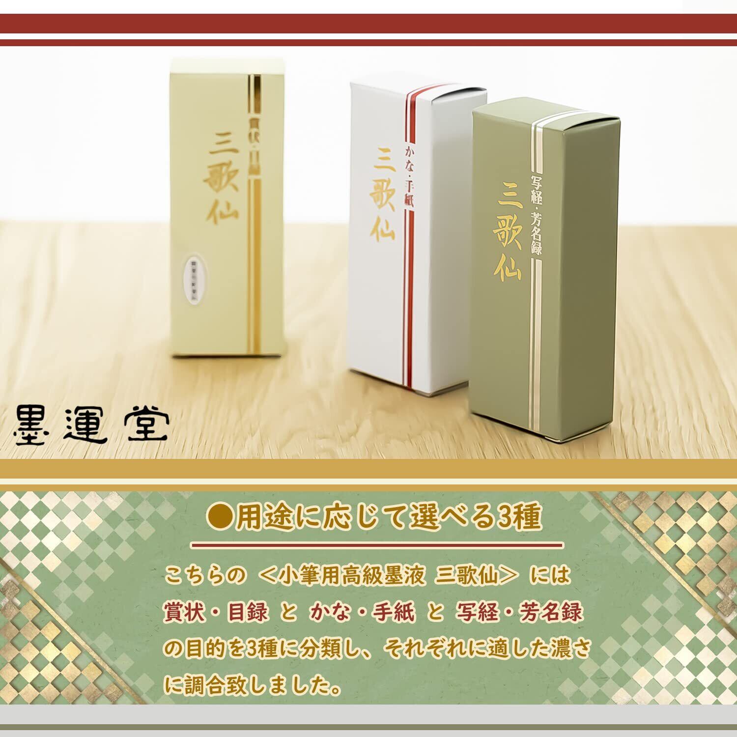 墨運堂 墨汁 高級墨液 三歌仙 かな・手紙用 50ml 11819