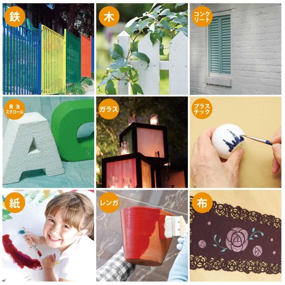 【塗れないもの】■[室内外 各場所]自動車 / バイク / 高級家具 / 床面 / ビニールクロス 等■[食に関する物]食器・玩具など口に触れる危険性のある物■[鉄以外の金属]ステンレス / アルミ / メッキ / 真ちゅう / 銅 / ホーロー■[一部のプラスチック]ポリエチレン / ポリプロピレン等■[ツルツルした所]タイル / 化粧板 / 陶器 等■[吸い込みの激しい物]素焼きのタイル・鉢 等/ MDF材 ■[特殊処理された素材]シリコン / フッ素 等