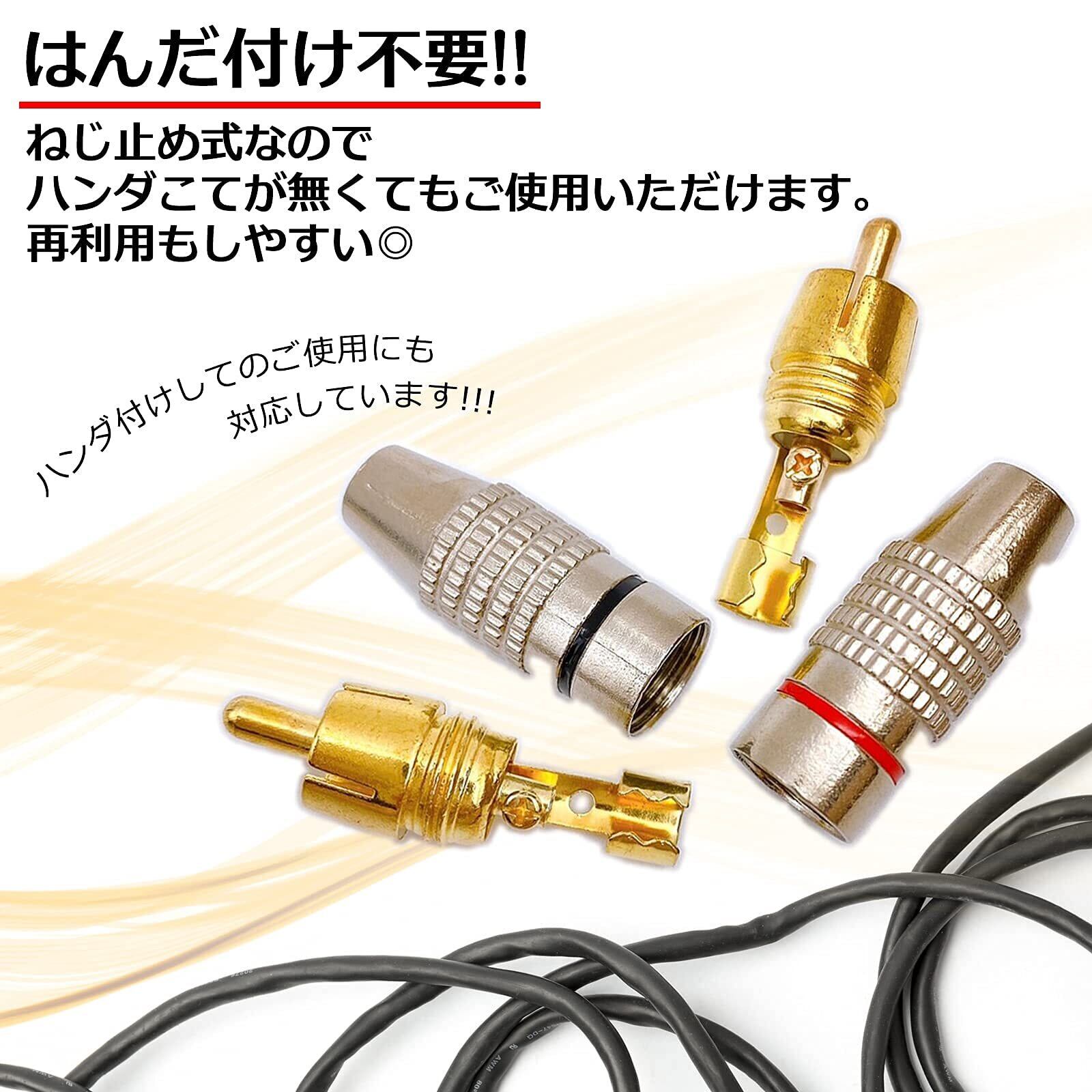 Meliore 金メッキ RCA プラグ 端子 はんだ レス タイプ オス PLUG TYPE タイプ B 赤黒 ケーブル 自作 レッド ブラック 12個 セット