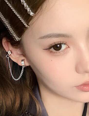 AREUM ステンレス鋼 イヤーカフ イヤリング チェーン レディース ピアス穴不要 韓国ファッション オルチャン 人気デザイン イヤーカフ&イヤークリップ 片耳用