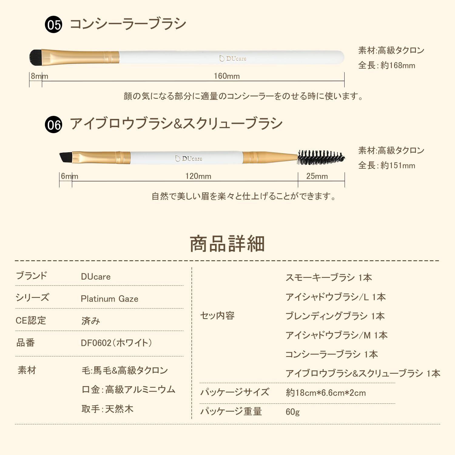 DUcare ドゥケア アイシャドウブラシ 6本セット アイメイク 専用ブラシ 天然馬毛 化粧ブラシ 超柔らかい 上質なメイクブラシ 魅力的な目元 メイク道具 ホワイト0602
