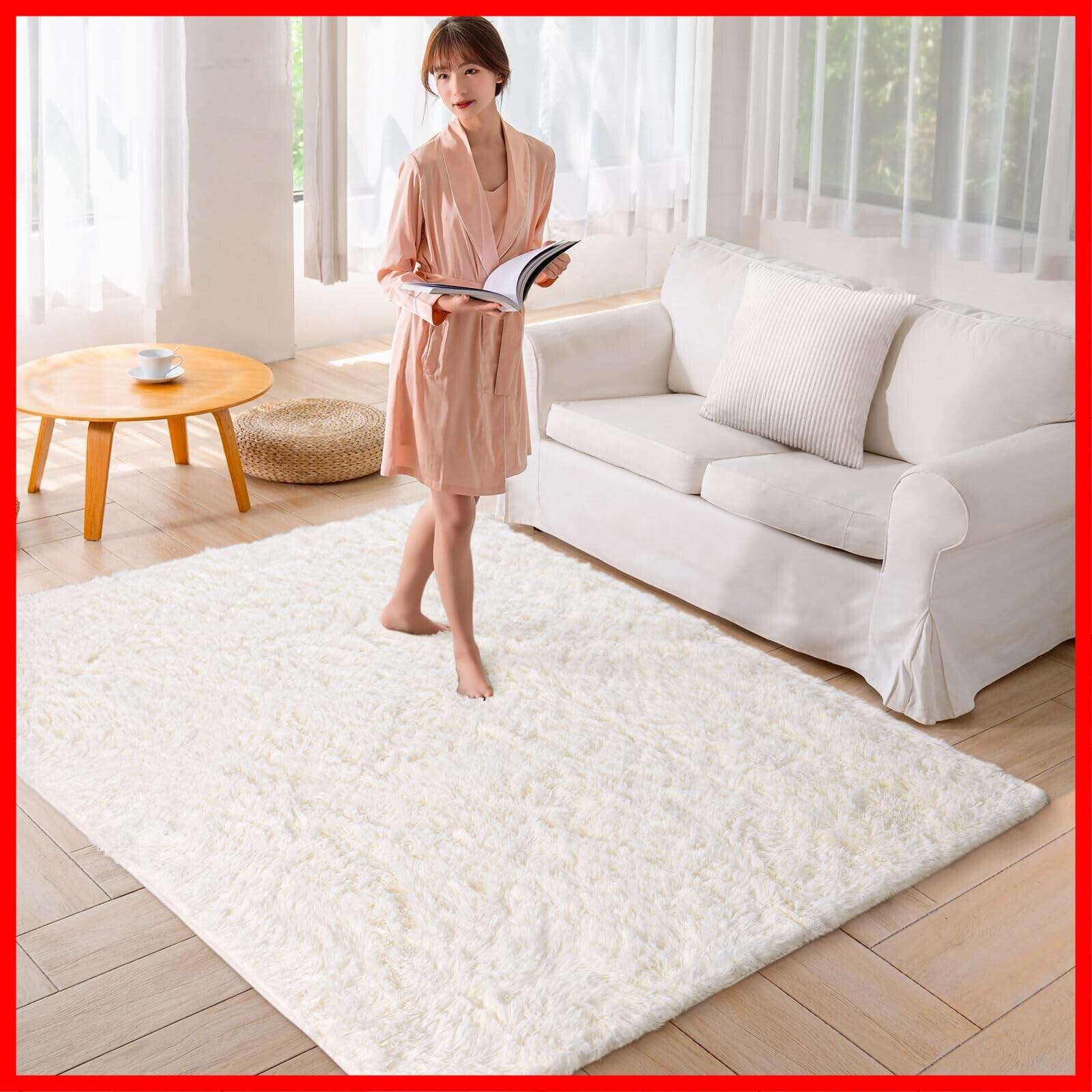 Beddiny カーペット ラグ ラグマット 洗えるラグ【中層:極厚30D高密度ウレタン 独自技術の抗菌防臭加工】絨毯 オールシーズン快適に使用 滑り止め付き 高密度シャギーラグ アイボリー 120×160cm
