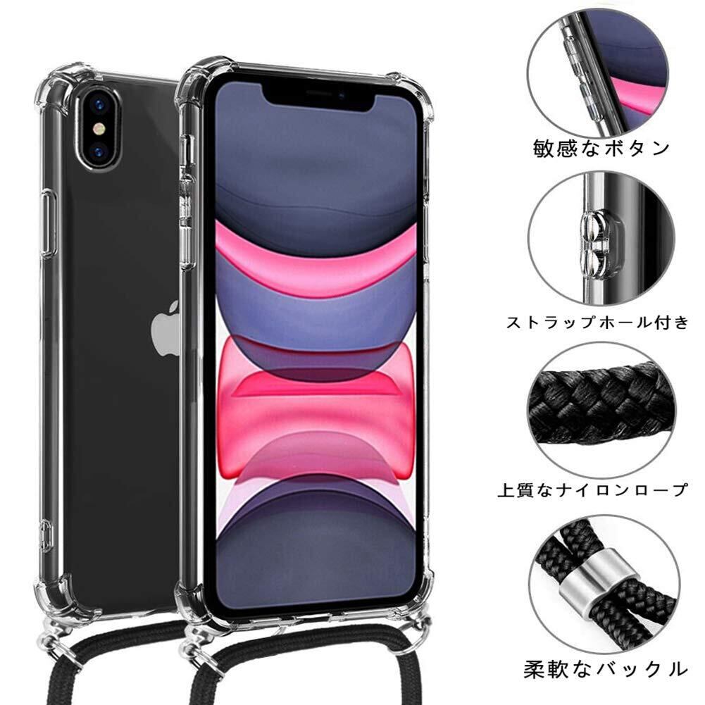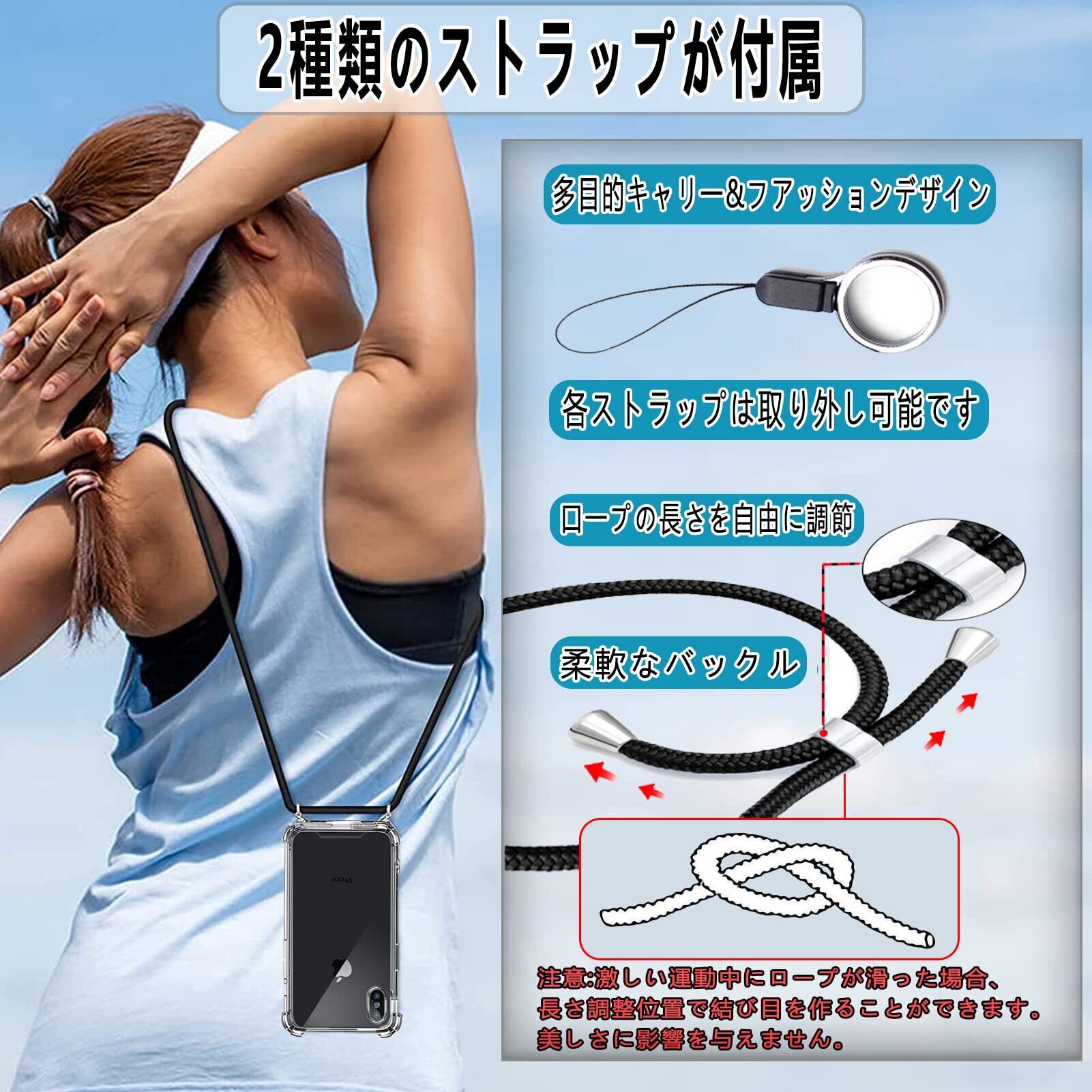 OJBSEN iPhone XS Max 用ケース アイフォン XS Max 用カバー【ストラップ2種付き】調節可能な ショルダー 肩がけ 首掛け 紐付き 薄型 透明 PC + 軽量 シリコン TPUバンパー カバー ストラップホール付き [耐衝撃 傷防止 全面保護 米軍MIL規格 防指紋] ワイヤレス充電対応 アイフォン XS Max スマホ ケース (クリア)