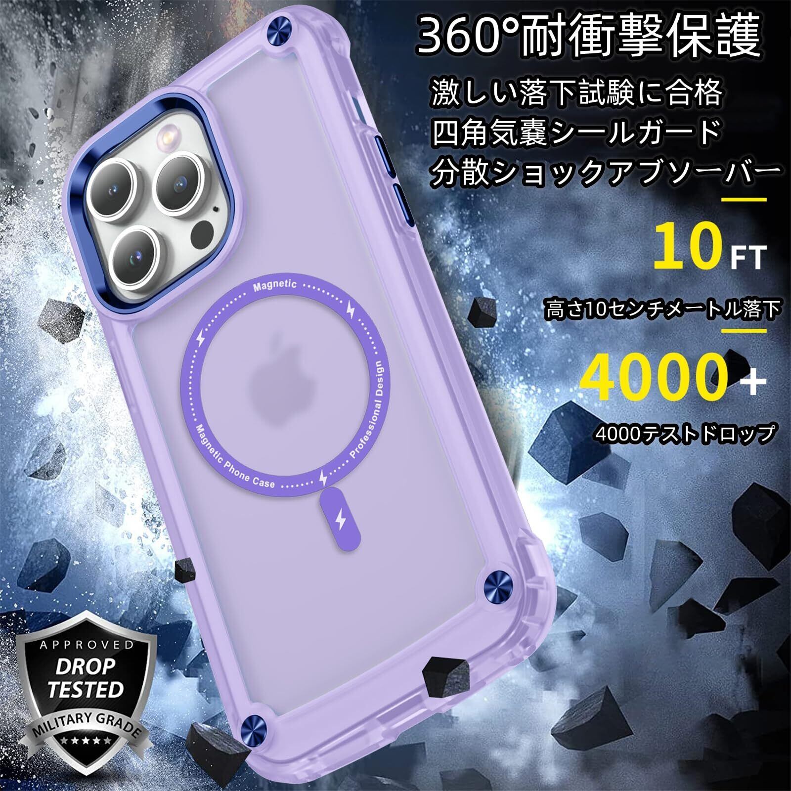 Kuoyida iPhone13 Pro 用ケース 磁気センサーリング搭載 Magsafe対応 米軍MIL規格 超耐衝撃 四角気嚢 半透明 サラサラ手触り 傷に強い背面 クリア 黄変しにくい 画面保護 レンズ保護 13proマグセーフ ケース・スマホケース iPhone 13pro人気 6.1インチ(クリアパープル, iPhone 13 Pro【2021】)
