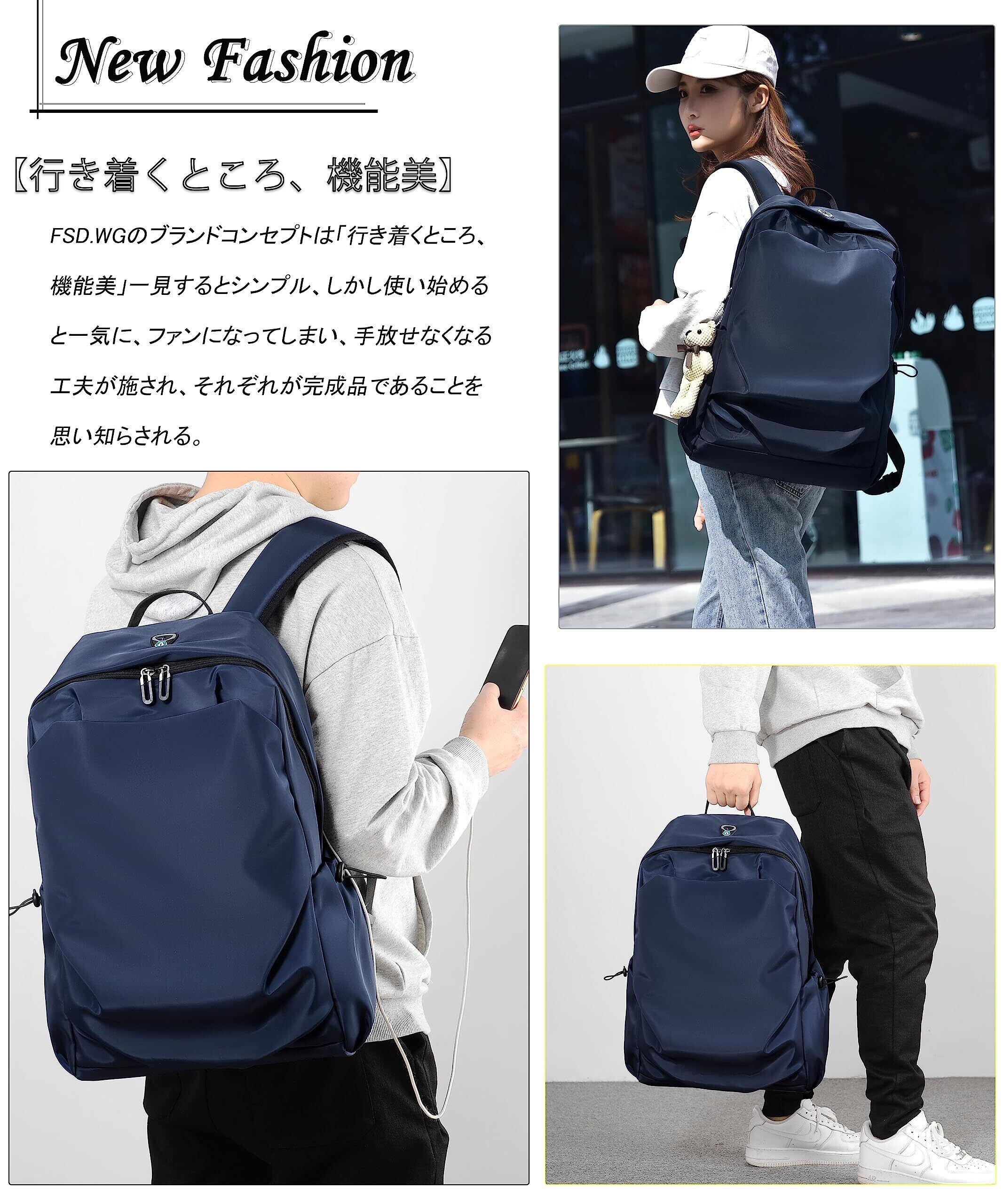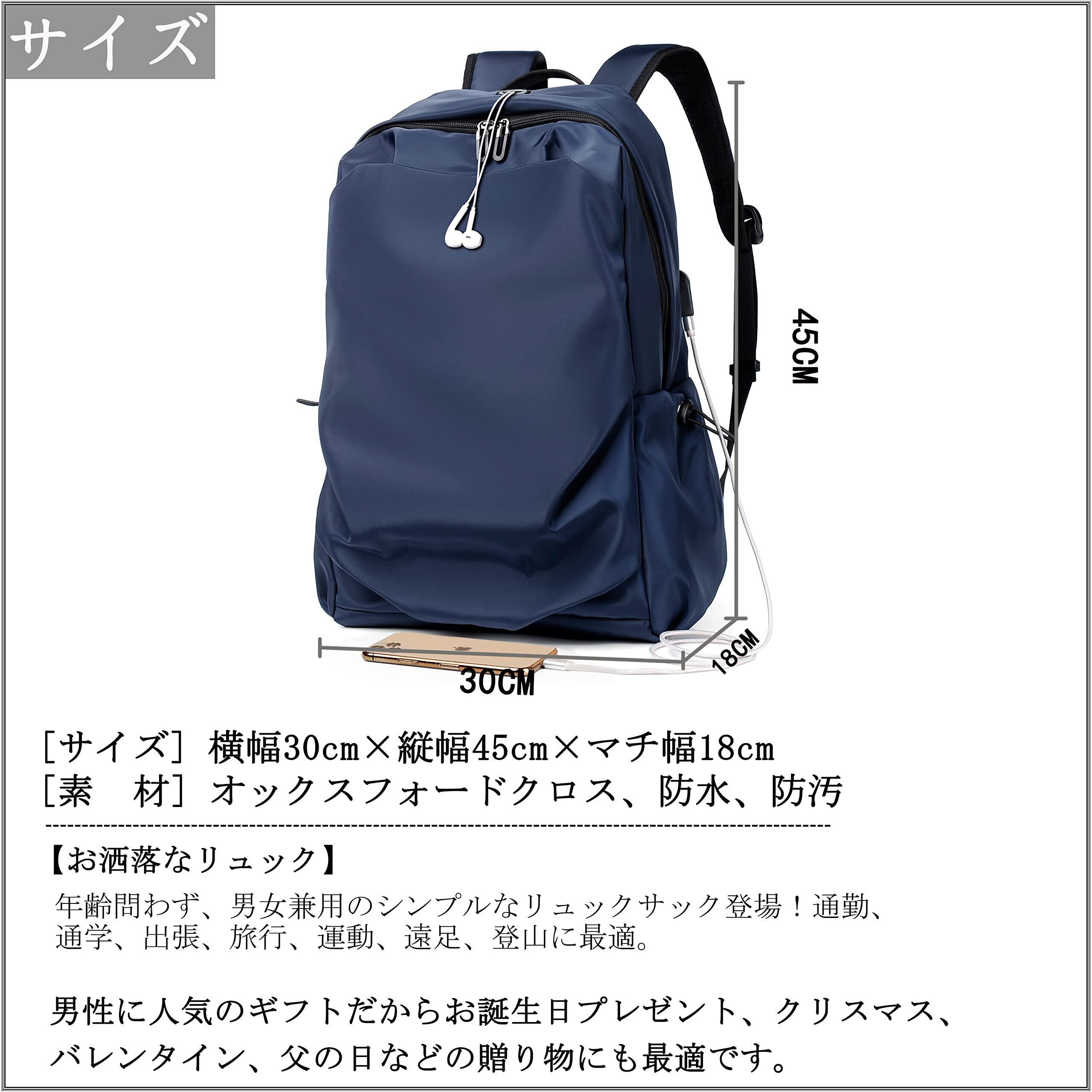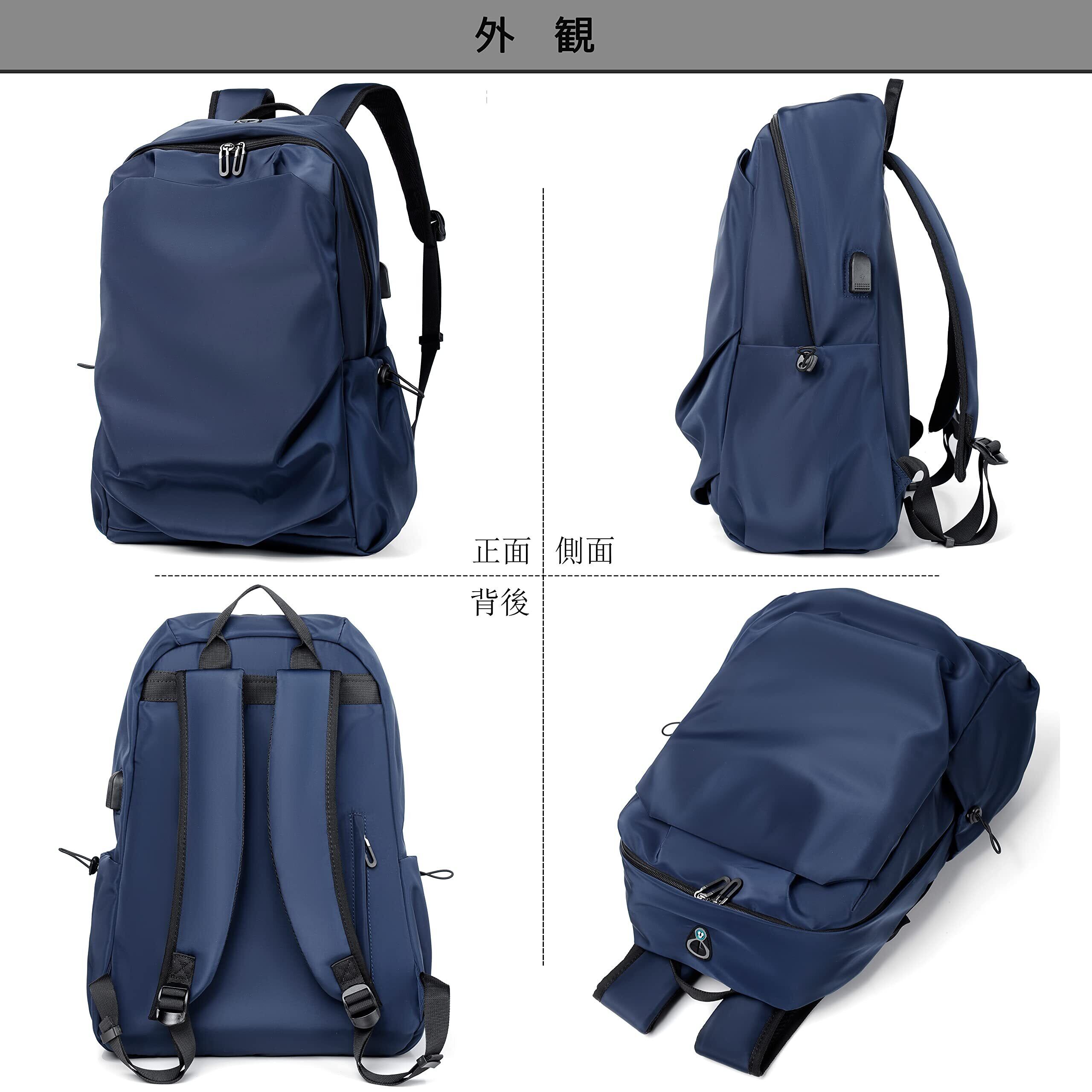 【軽量で大容量/USB充電ポート】収納力は十分にあり。A4サイズ、PC、教科書、傘、衣類、飲み物、お弁当、重い荷物を入れても安心感あり。通学や通勤や旅行や出張などにおすすめです。※バックパックの側面にUSB充電ポートあり、お手元のスマトホンを充電できます、気楽に片手で携帯電話が使えます。