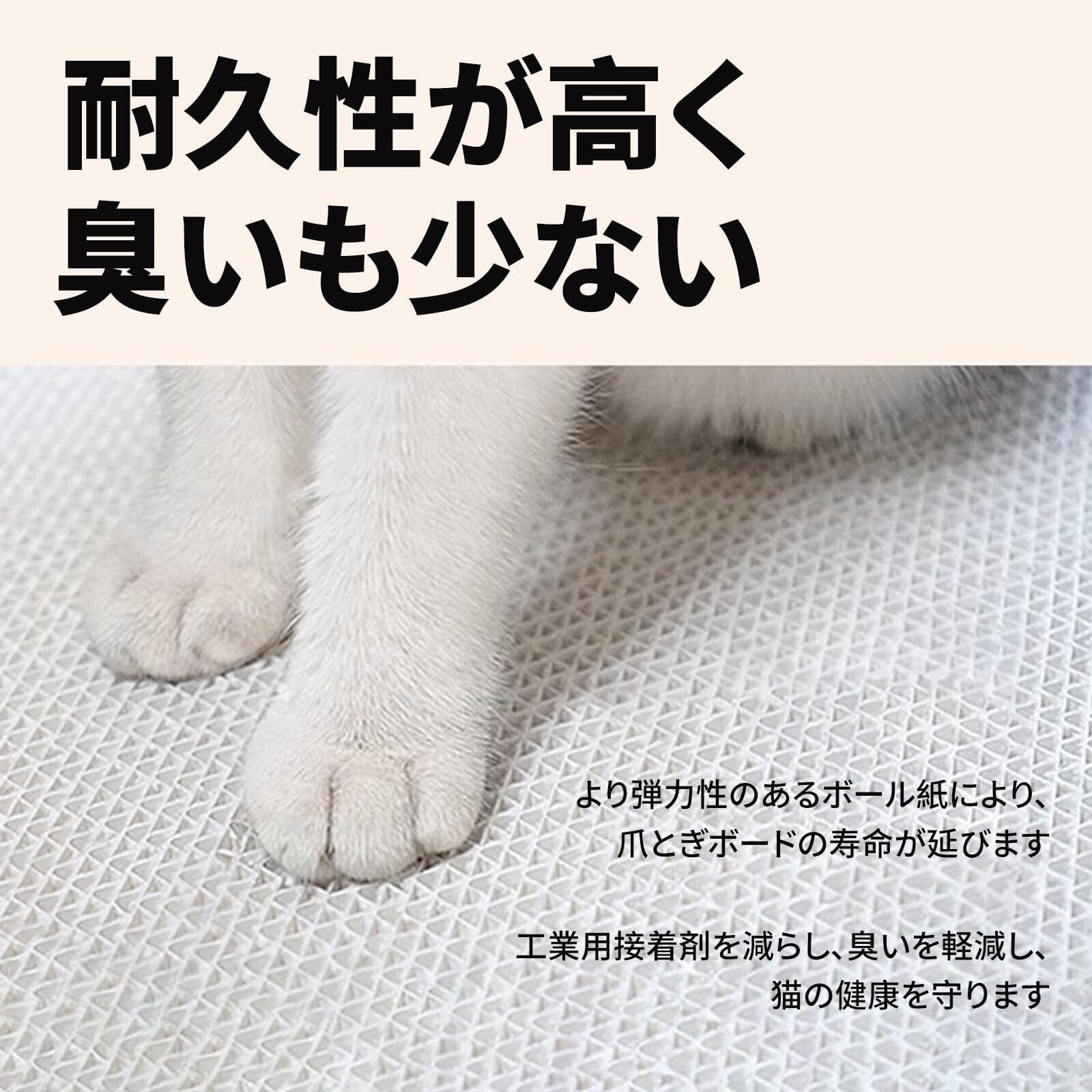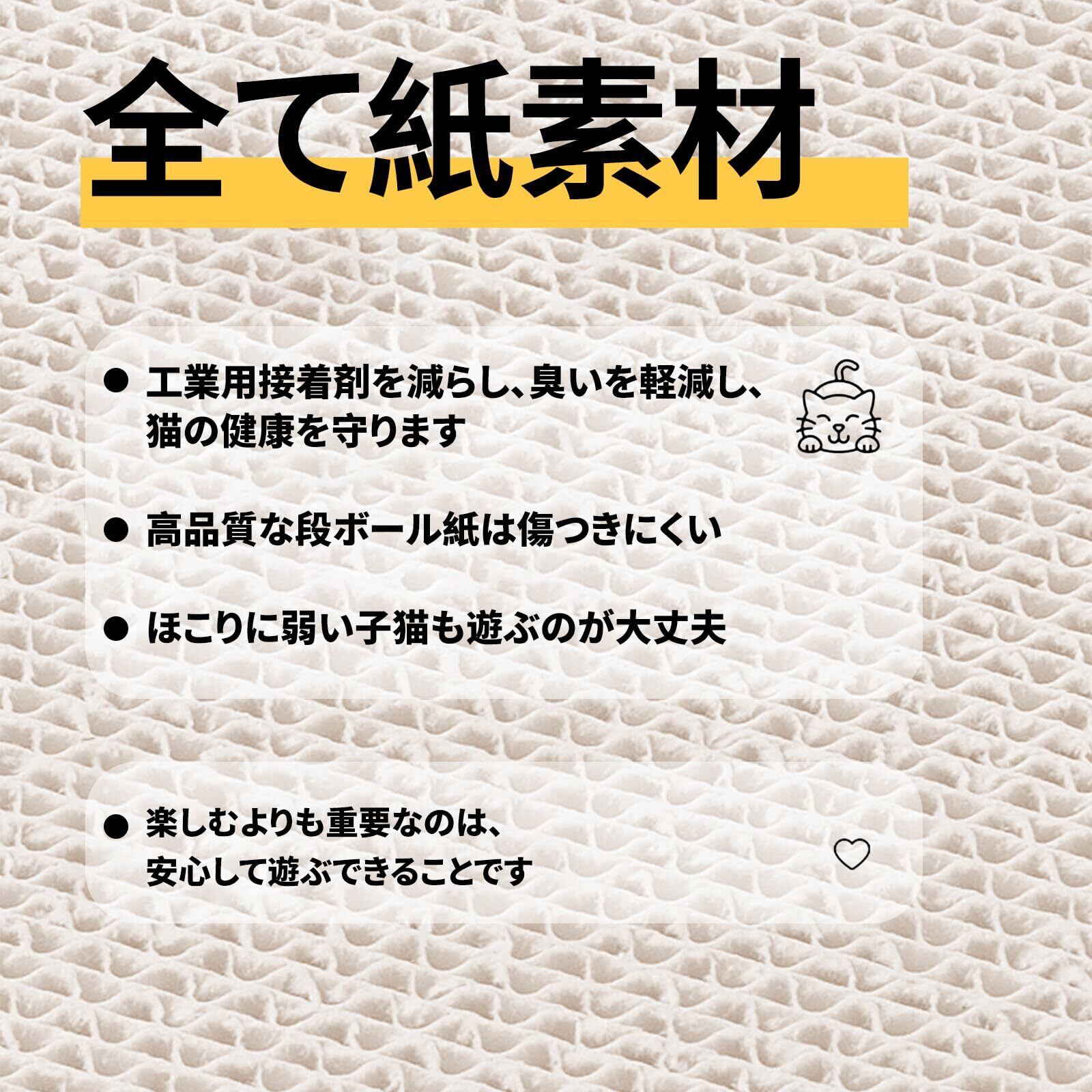 【安心安全な高品質素材】天然素材でできているので、猫ちゃんが舐めたりかじったりしてしまっても安心。素材は環境にも優しく、リサイクル可能です。また、強化の高密度な段ボールを採用しており、研ぎクズが飛び散りにくいです。同時に、爪とぎの際にネコの肉球に傷つけません。